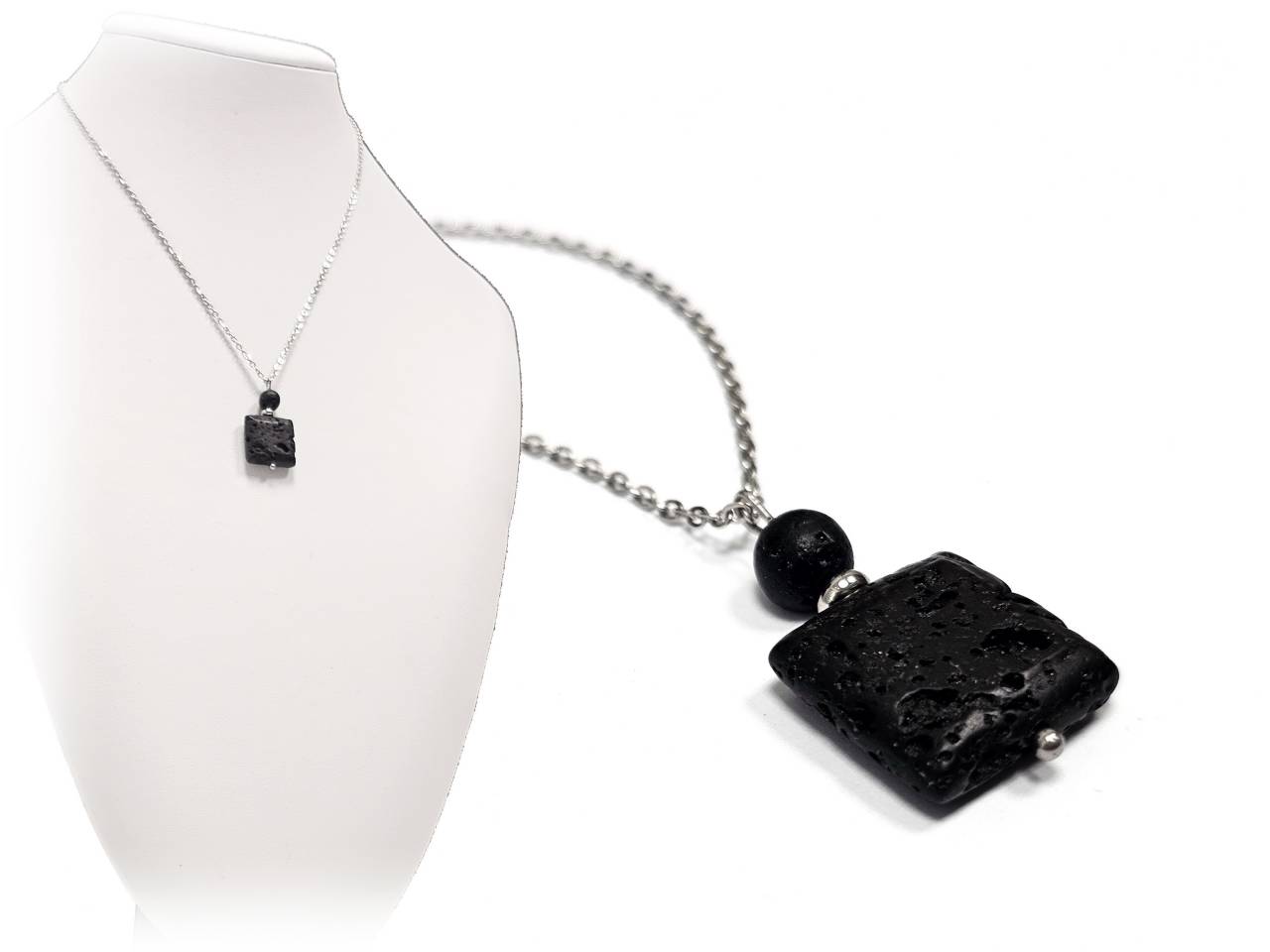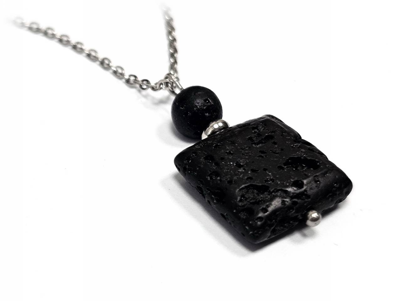 Κολιέ Πέτρα λάβα, ατσάλι σε χρ...