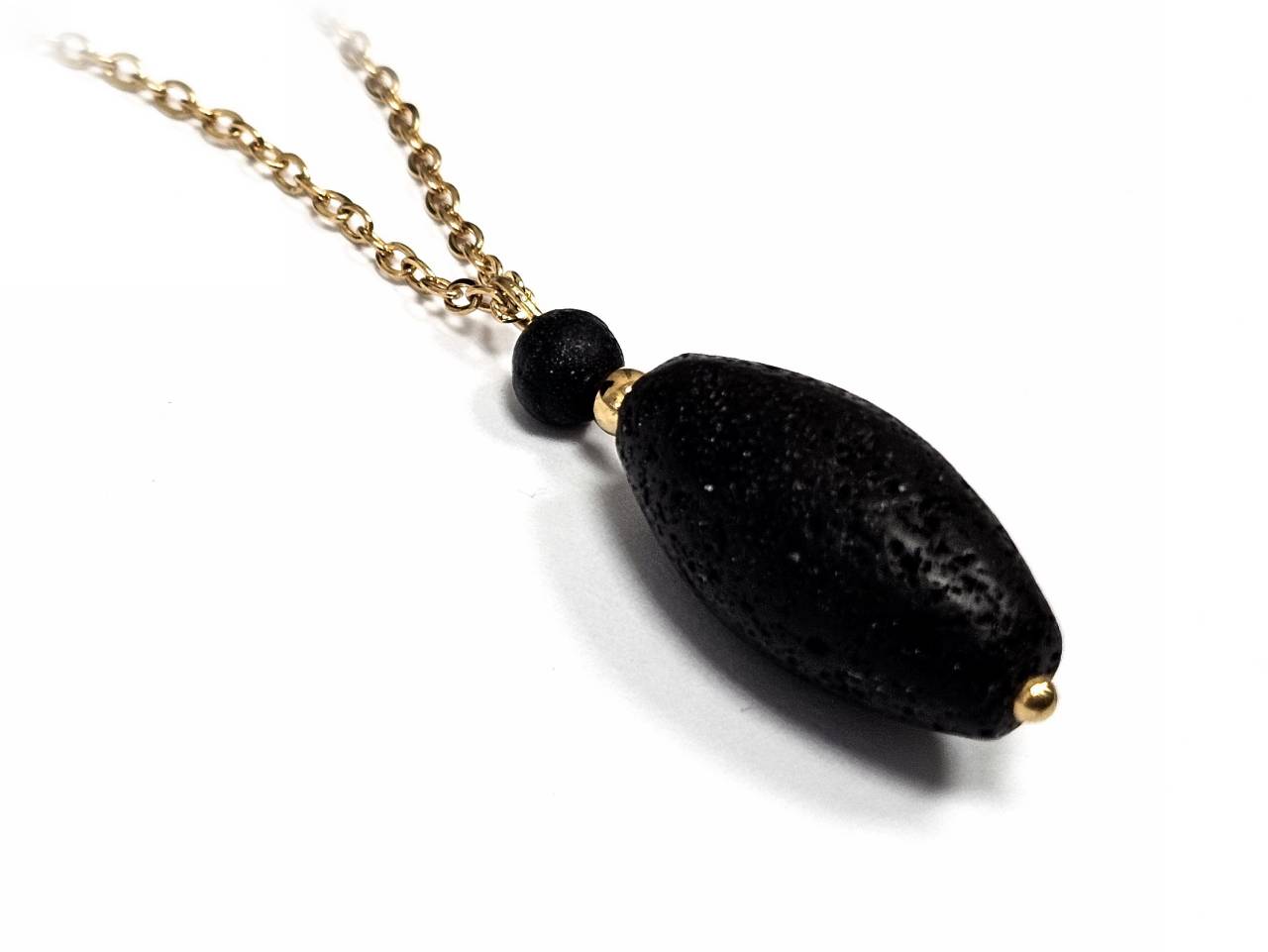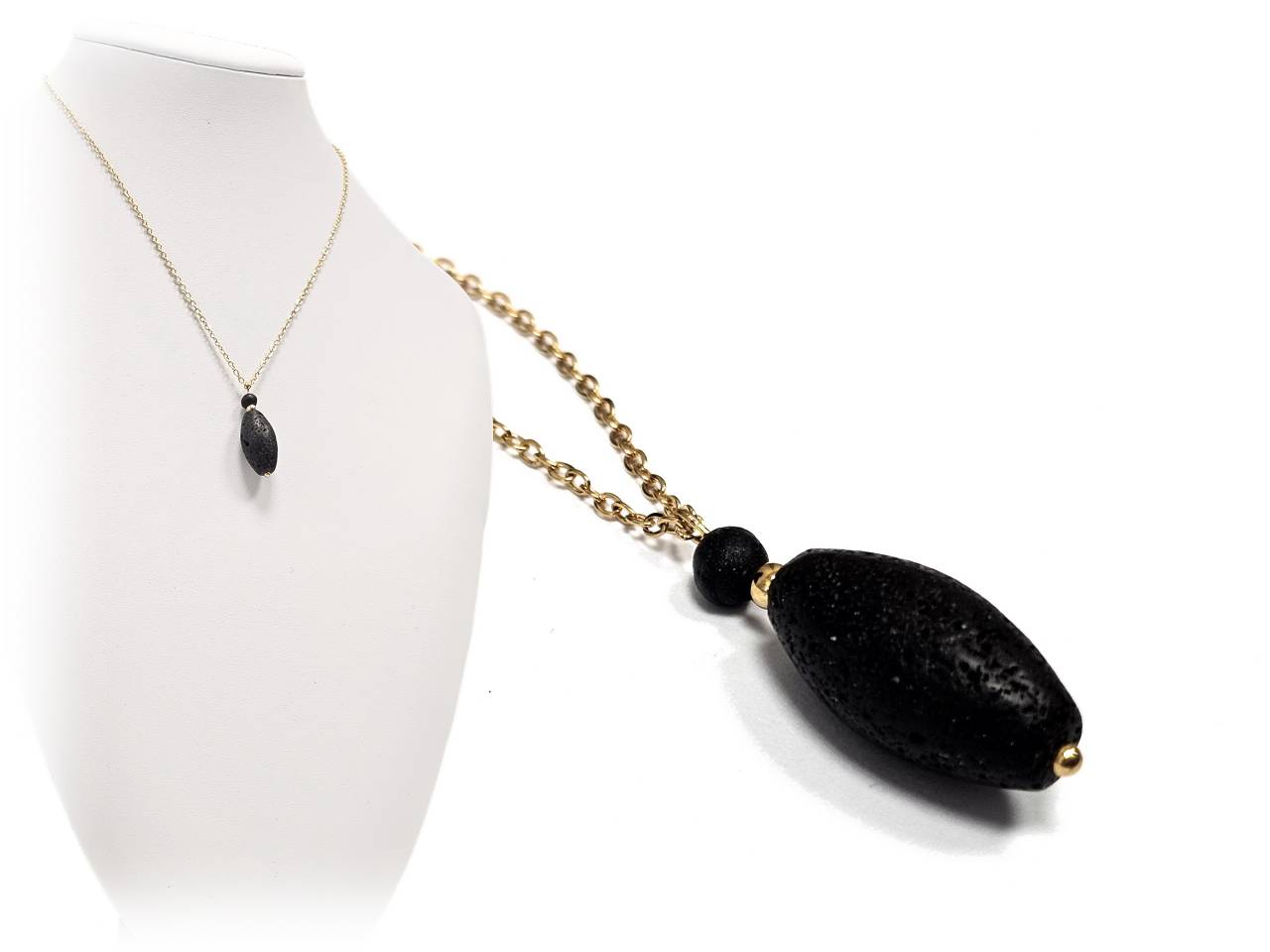 Κολιέ Πέτρα λάβα, ατσάλι σε χρ...