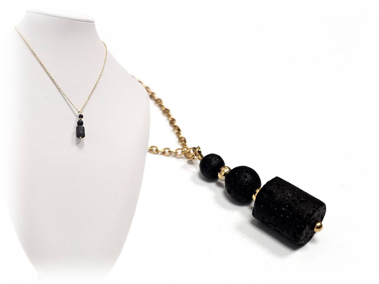 Κολιέ Πέτρα λάβα, ατσάλι σε χρ...