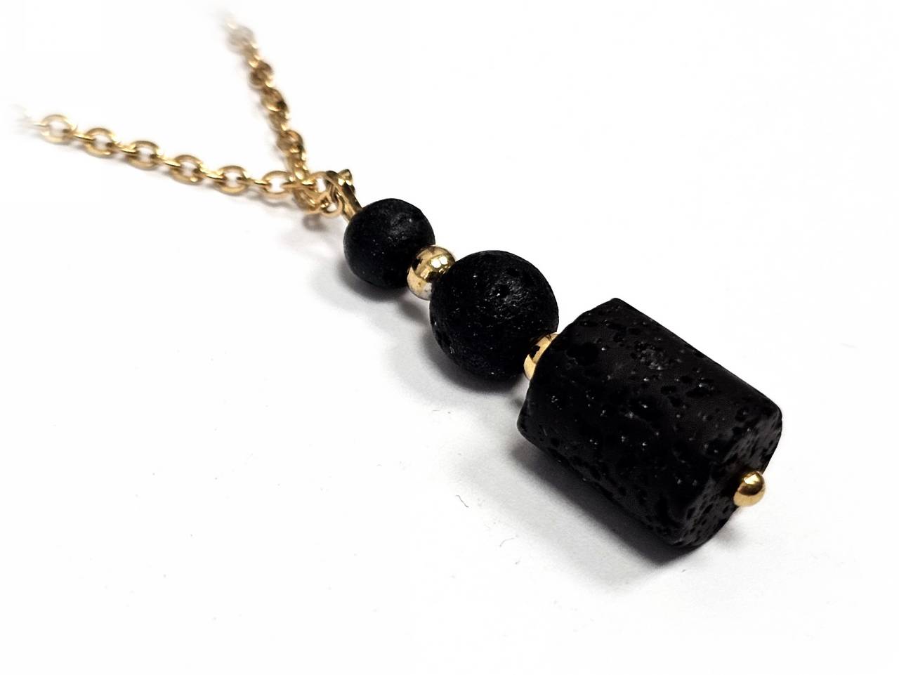 Κολιέ Πέτρα λάβα, ατσάλι σε χρώμα Χρυσαφί