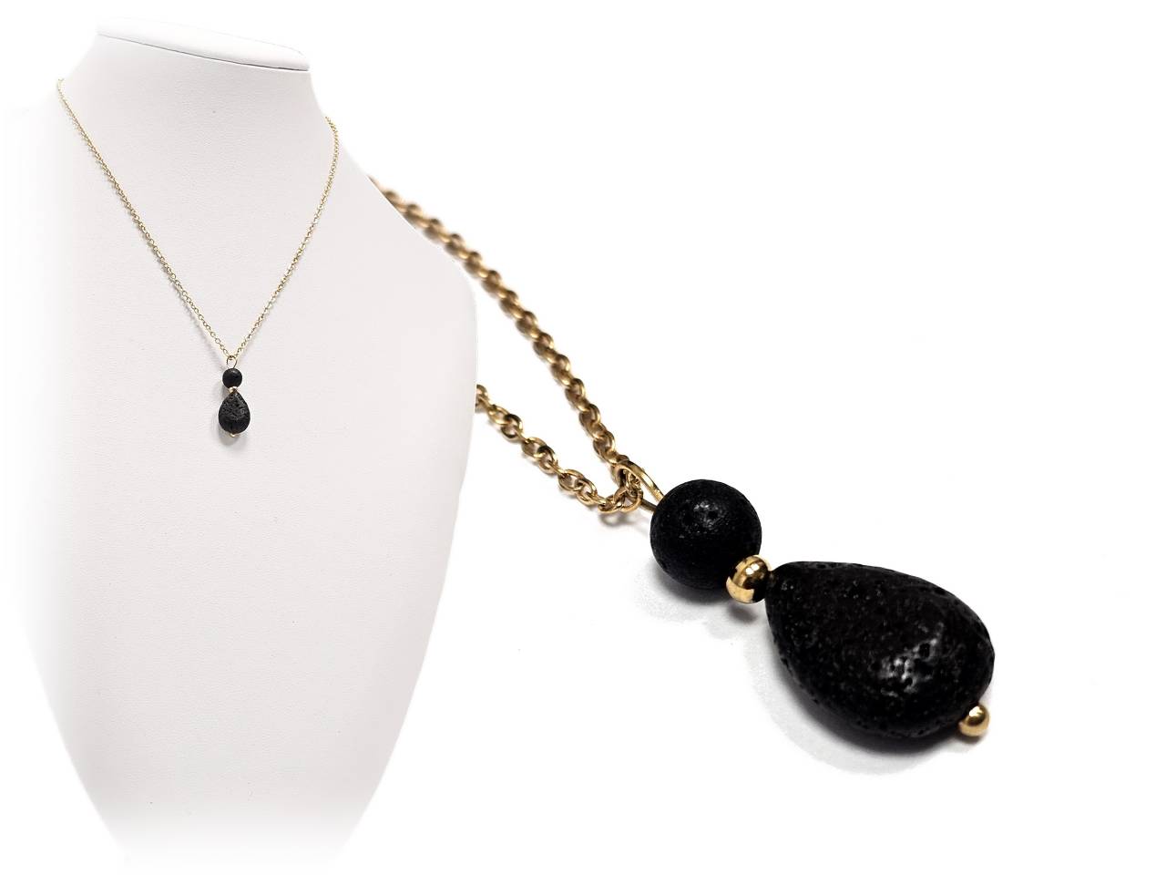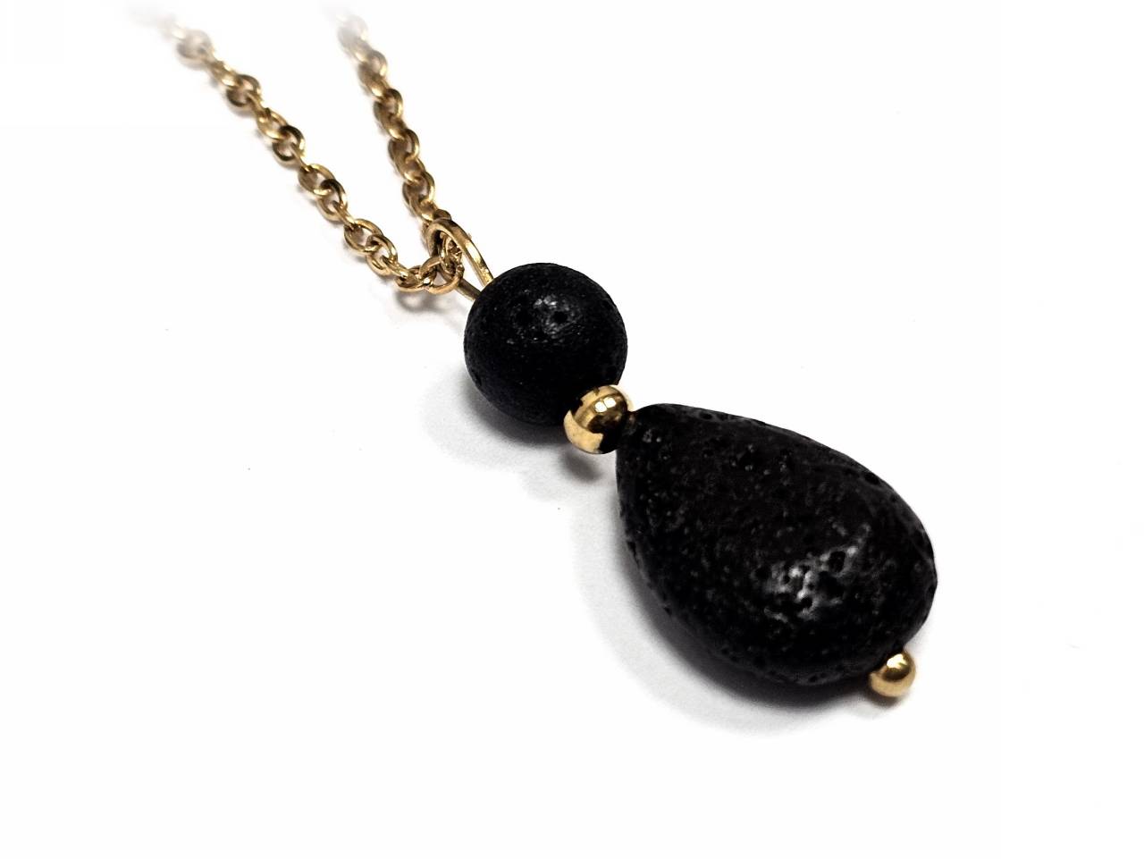 Κολιέ Πέτρα λάβα, ατσάλι σε χρώμα Χρυσαφί