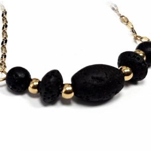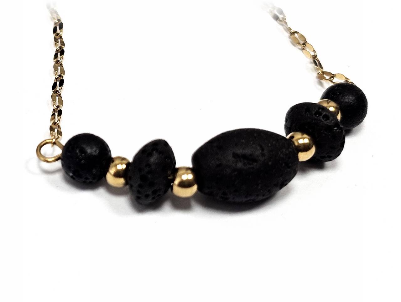 Κολιέ Πέτρα λάβα, ατσάλι σε χρώμα Χρυσαφί