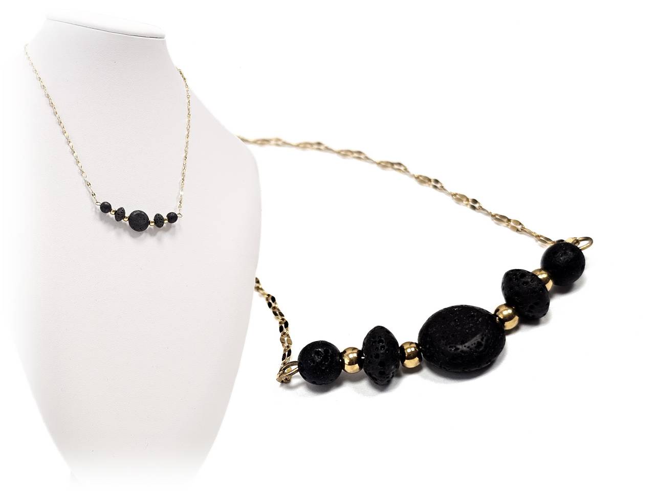 Κολιέ Πέτρα λάβα, ατσάλι σε χρ...