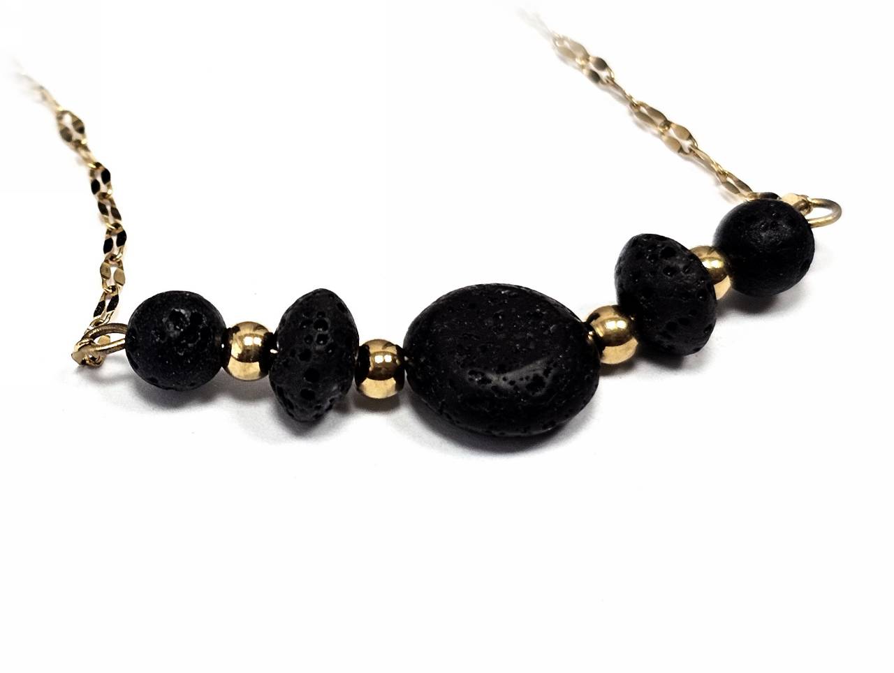 Κολιέ Πέτρα λάβα, ατσάλι σε χρώμα Χρυσαφί