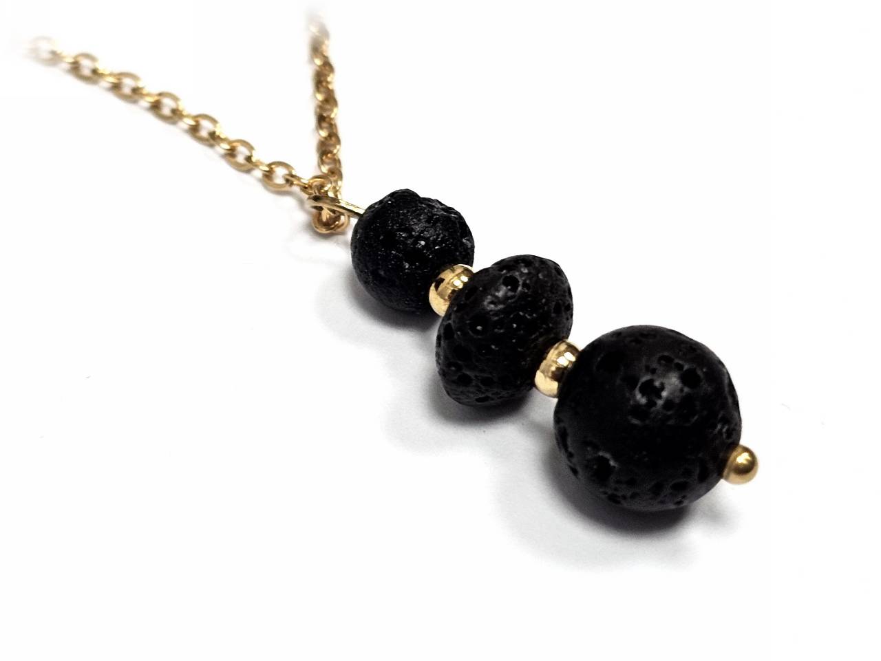 Κολιέ Πέτρα λάβα, ατσάλι σε χρ...