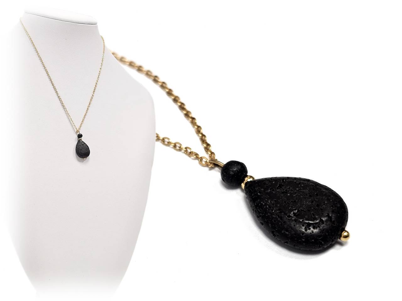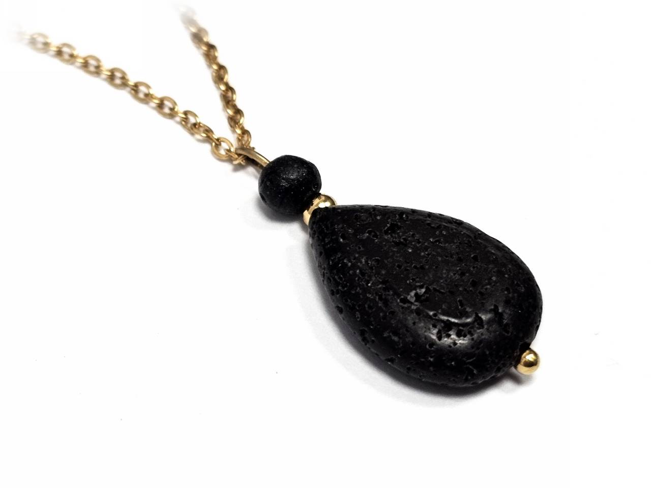 Κολιέ Πέτρα λάβα, ατσάλι σε χρ...