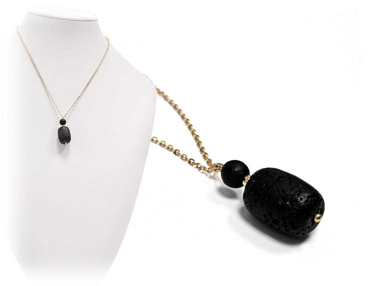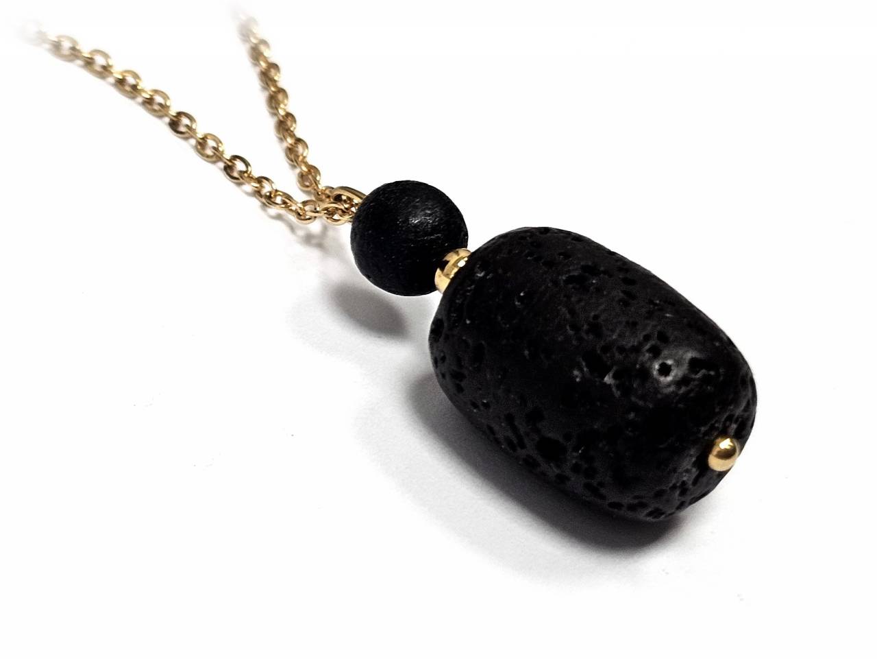 Κολιέ Πέτρα λάβα, ατσάλι σε χρ...