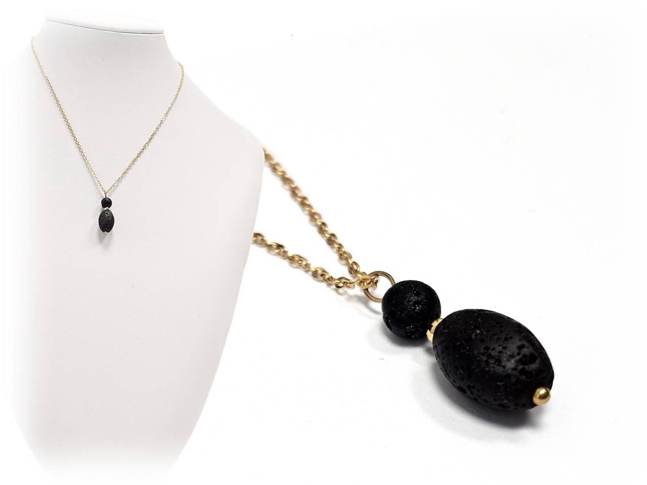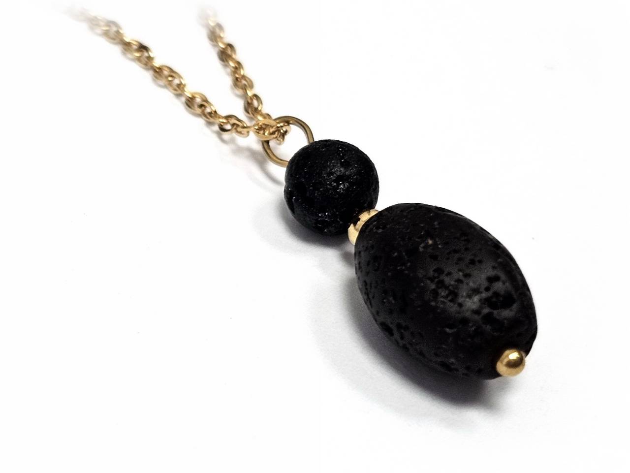 Κολιέ Πέτρα λάβα, ατσάλι σε χρ...