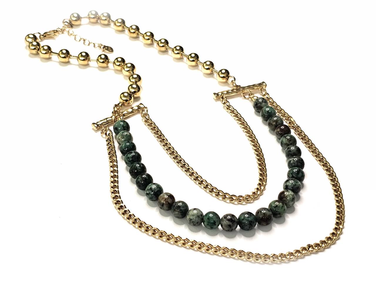 Κολιέ Πέτρα ατσάλι 316L, αλυσίδα με μαλαχίτη σε χρώμα Χρυσαφί