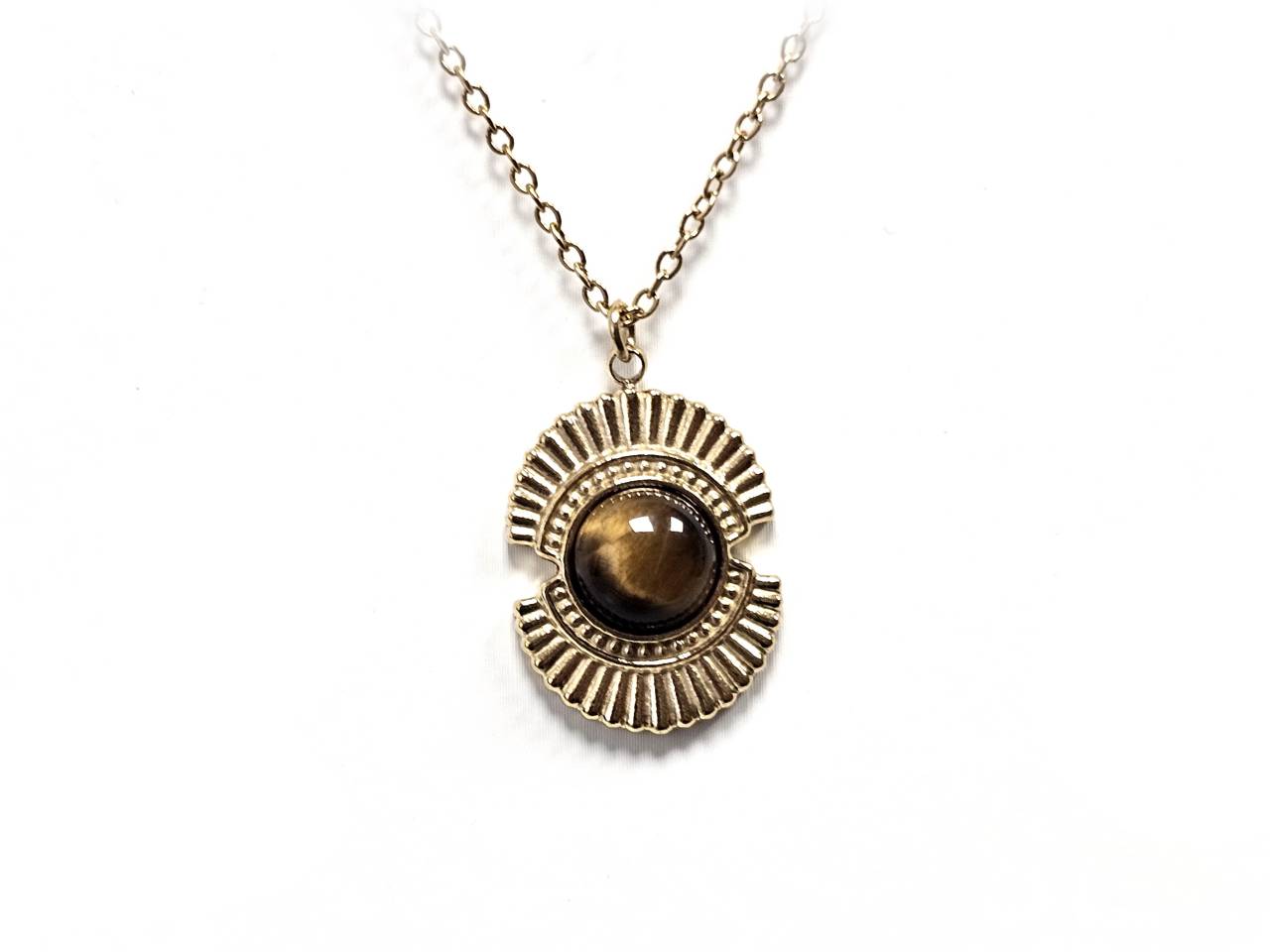 Κολιέ Πέτρα ατσάλι 316L, αλυσίδα με μάτι τίγρης σε χρώμα Χρυσαφί
