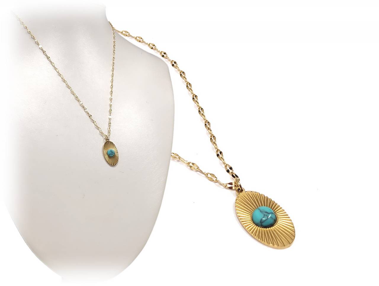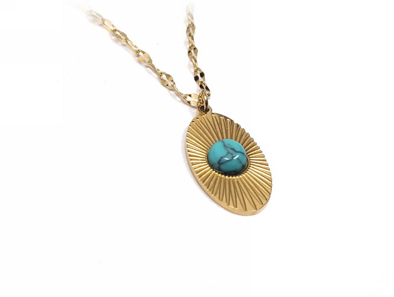 Κολιέ Πέτρα 316L, αλυσίδα με τυρκουάζ σε χρώμα Χρυσαφί