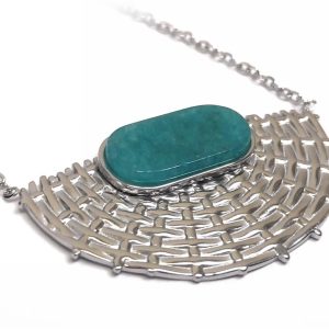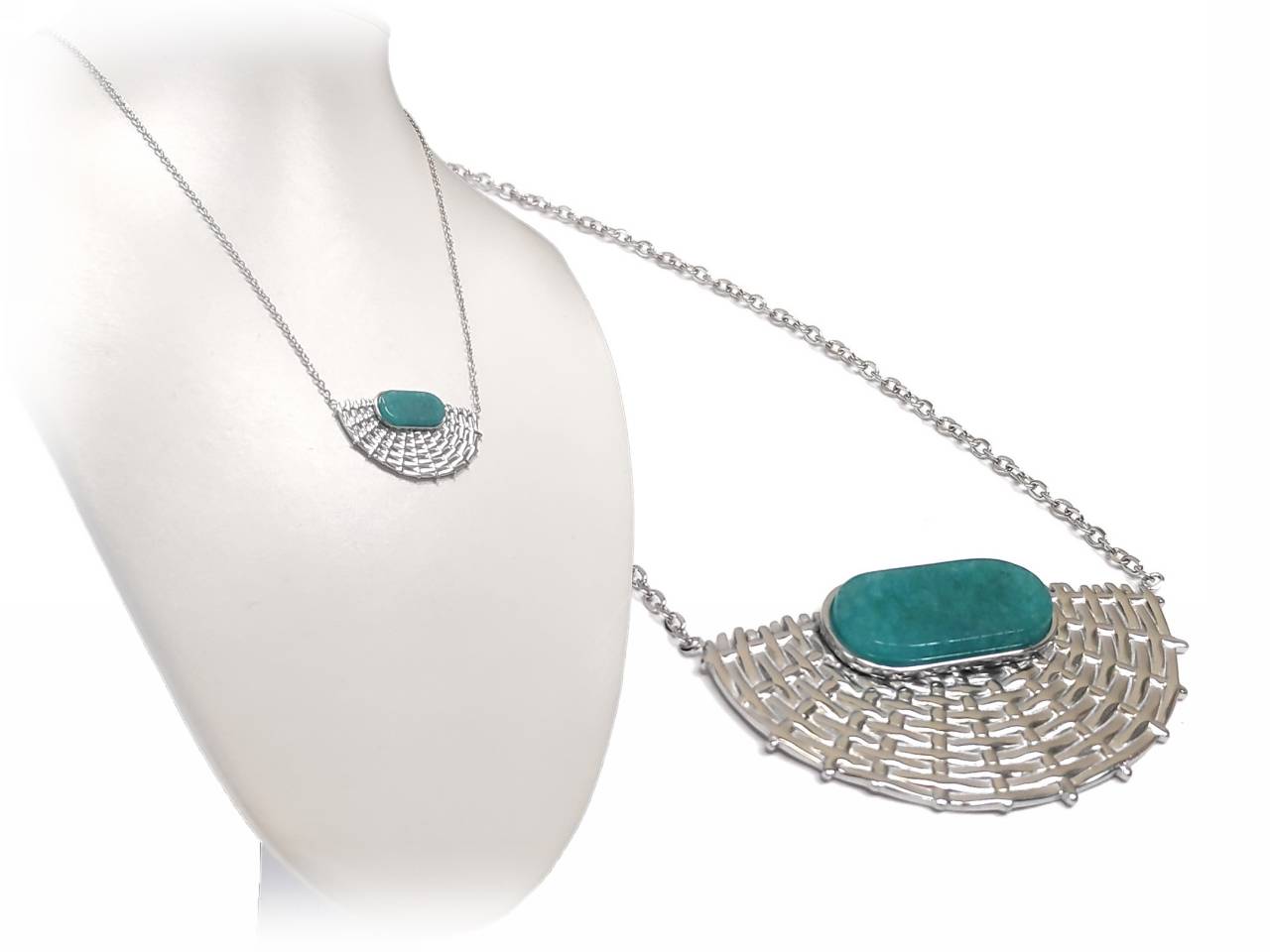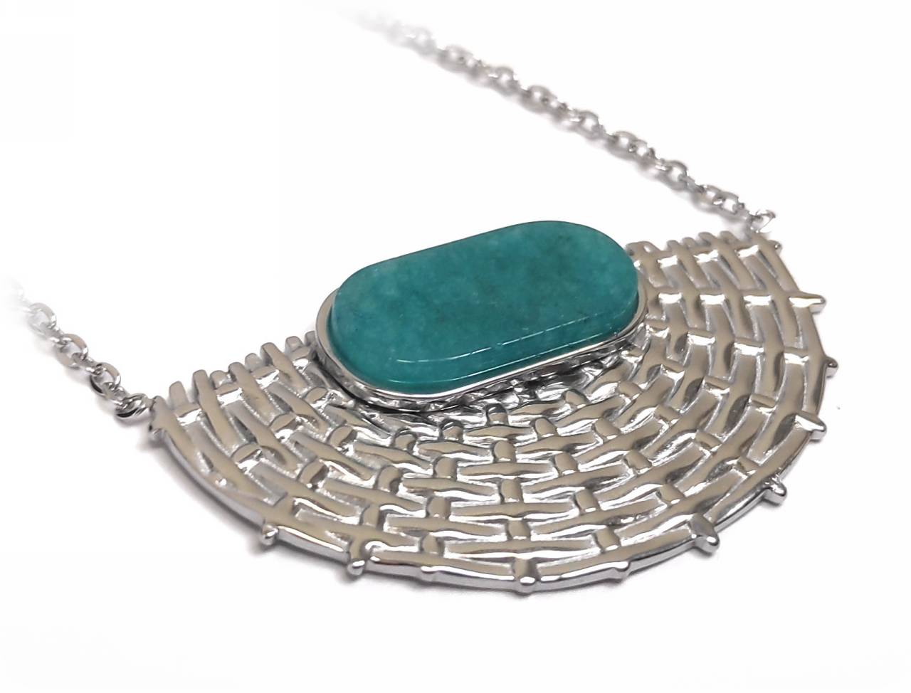 Κολιέ Πέτρα 316L,αλυσίδα με τυρκουάζ σε χρώμα Ασημί