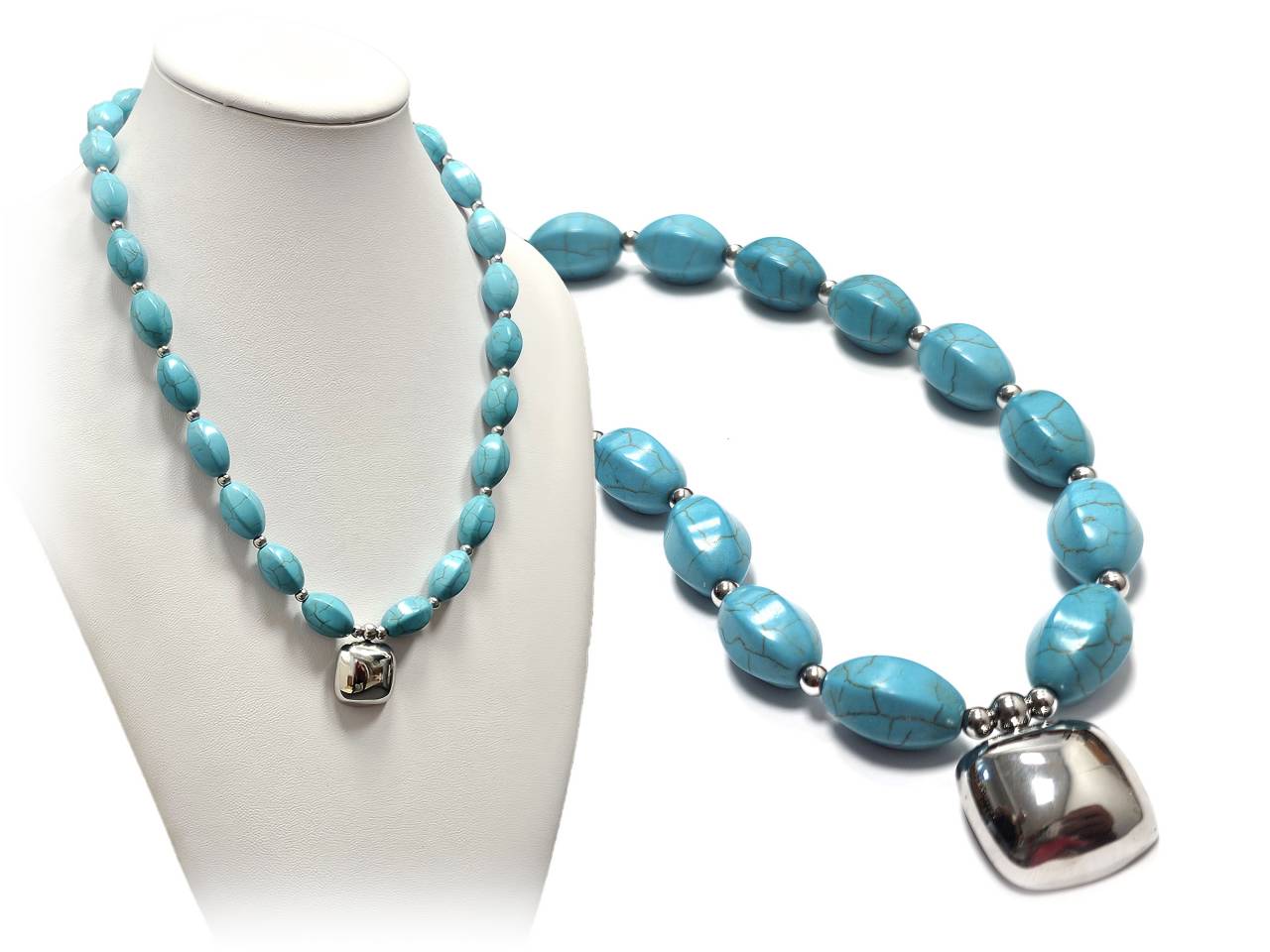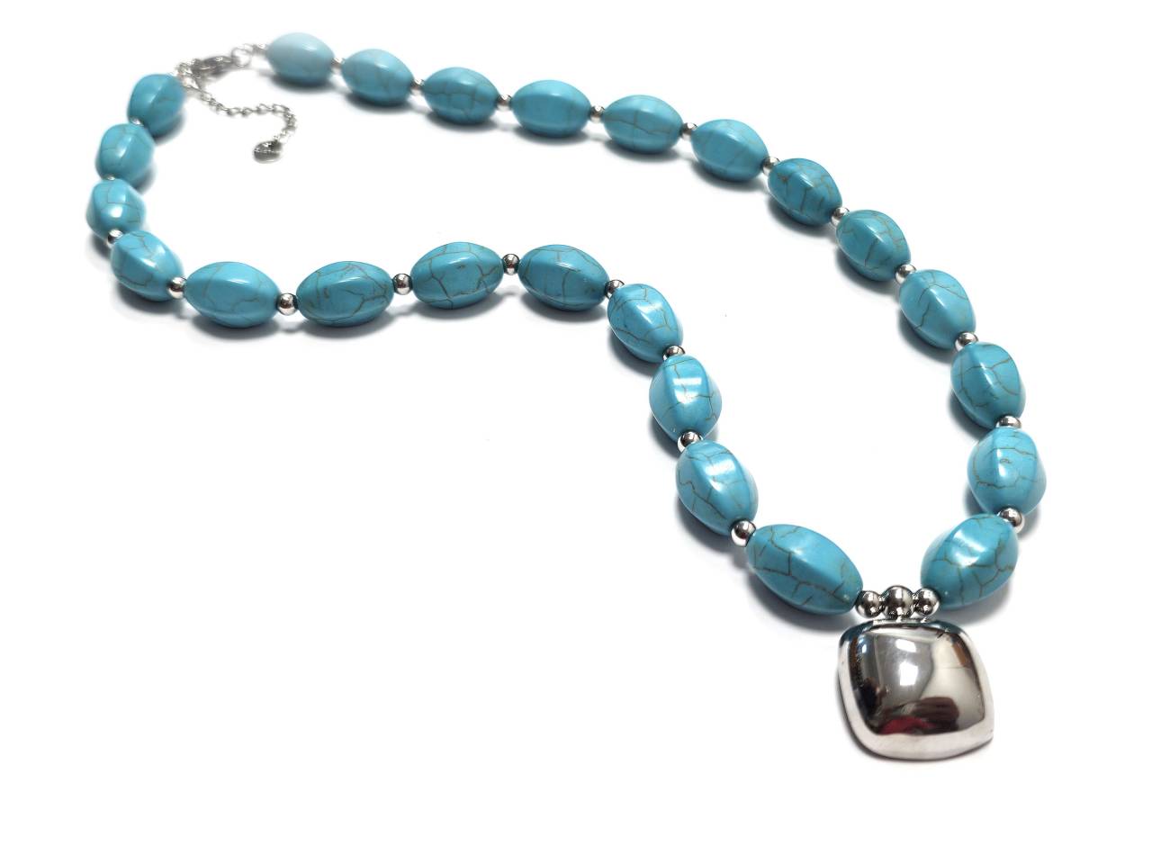 Κολιέ Πέτρα ατσάλι 316L, αλυσίδα με τυρκουάζ σε χρώμα Ασημί