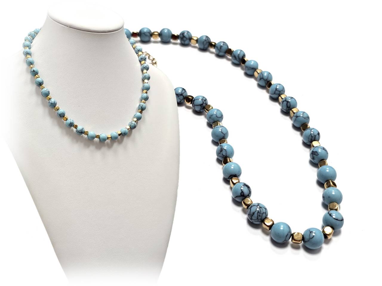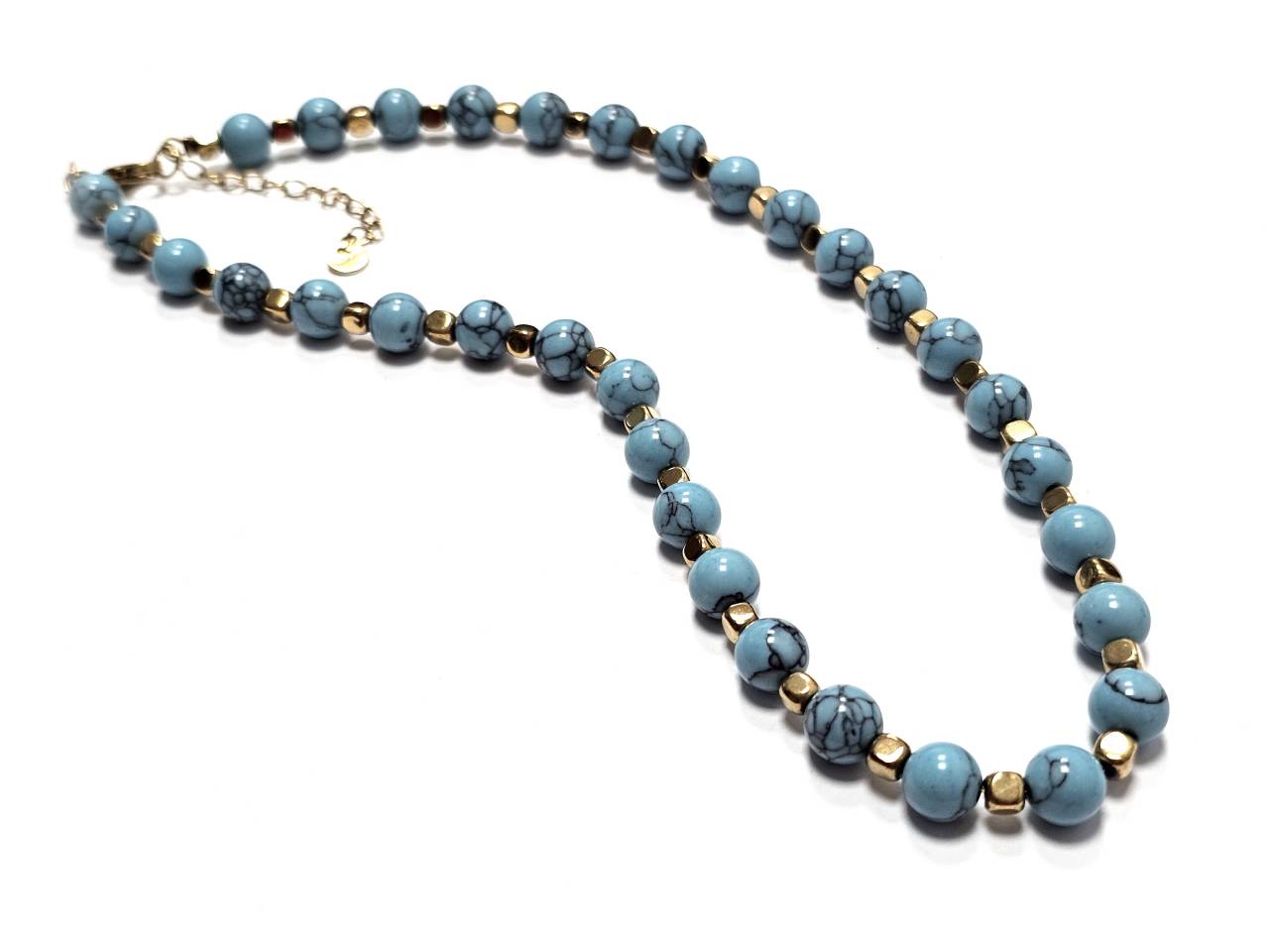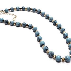 Κολιέ Πέτρα ατσάλι 316L, αλυσίδα με τυρκουάζ σε χρώμα Χρυσαφί