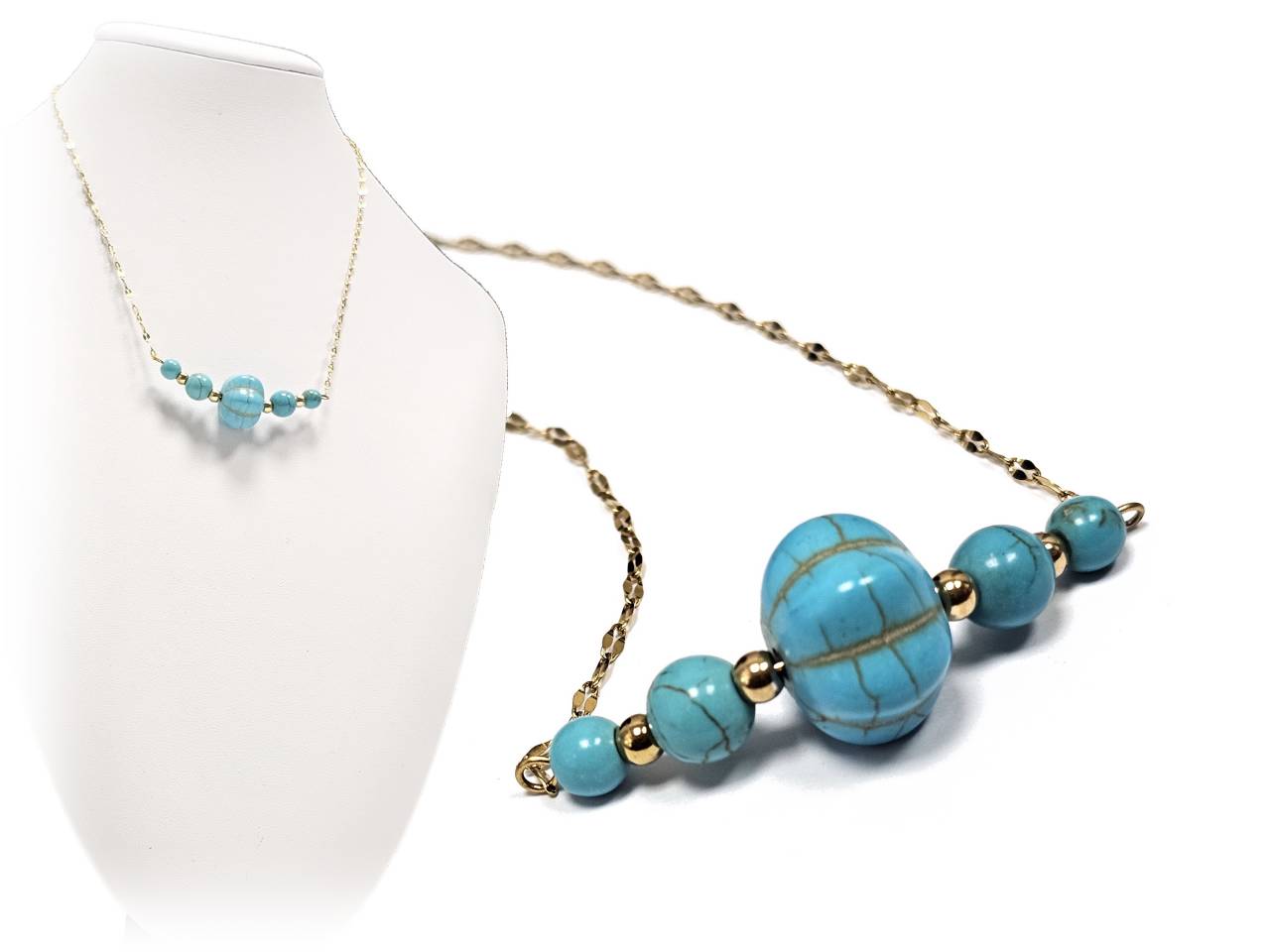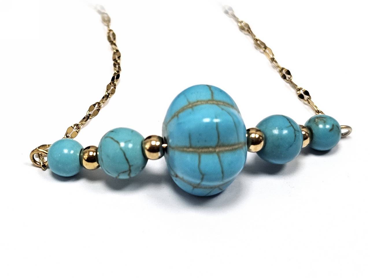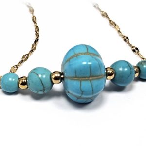 Κολιέ Πέτρα τυρκουάζ, ατσάλι σε χρώμα Χρυσαφί