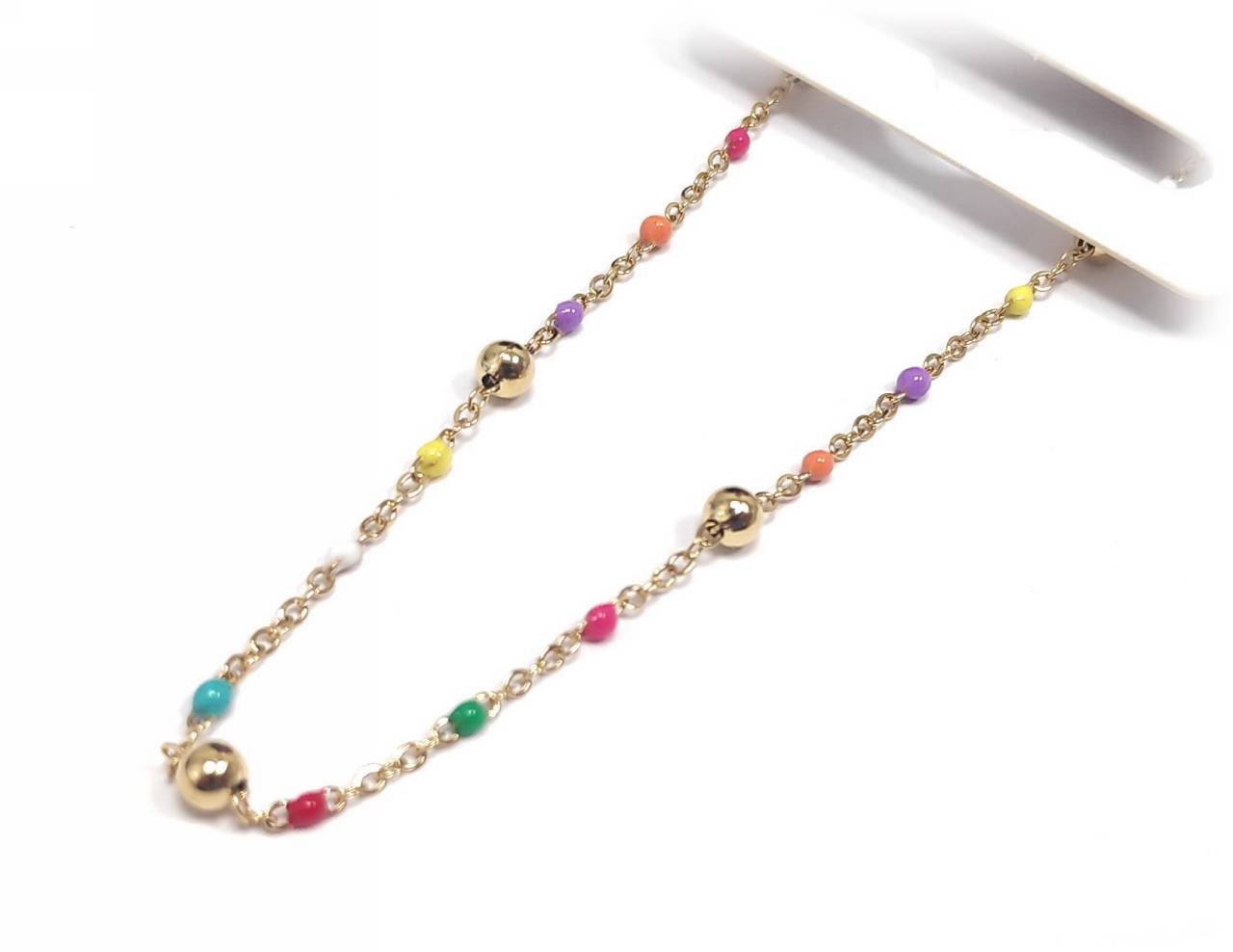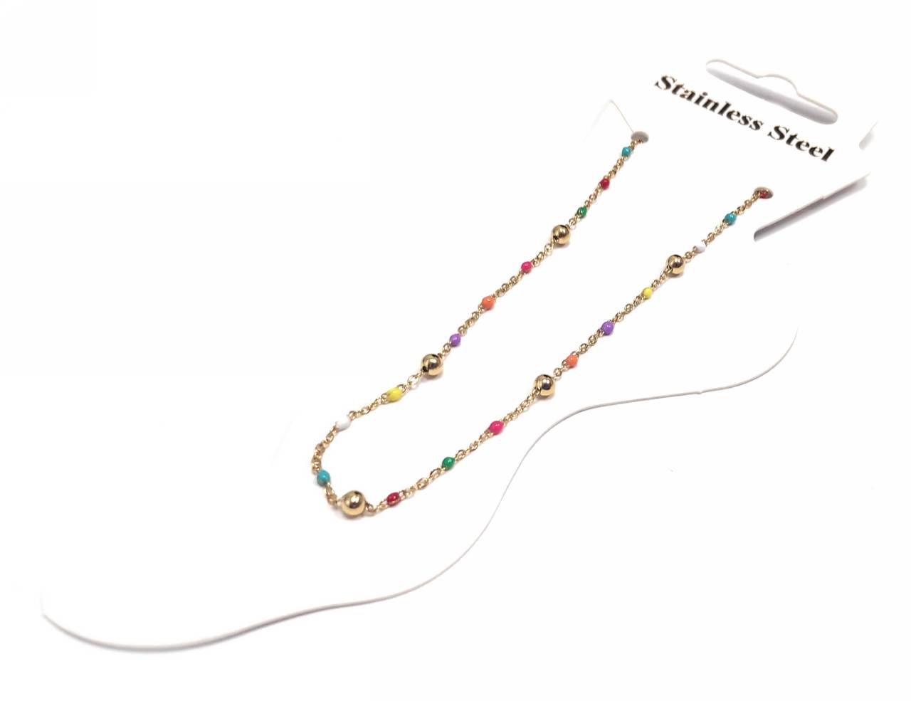 Βραχιόλι Ποδιού Ατσάλι 316L, αλυσίδα με πολύχρωμες χάντρες σε χρώμα Χρυσαφί