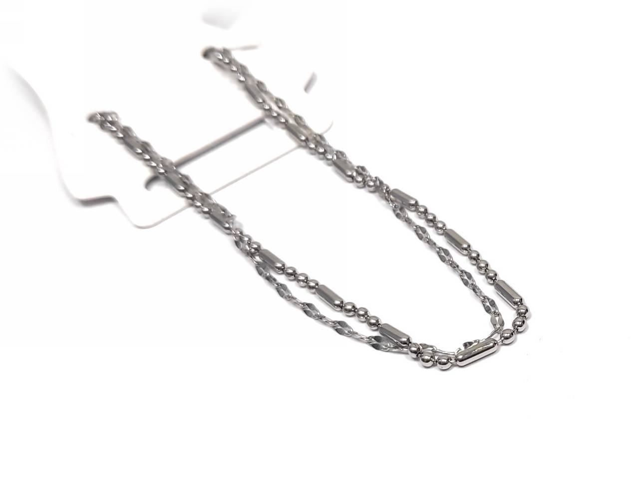 Βραχιόλι Ποδιού Ατσάλι 316L, διπλη αλυσίδα σε χρώμα Ασημί