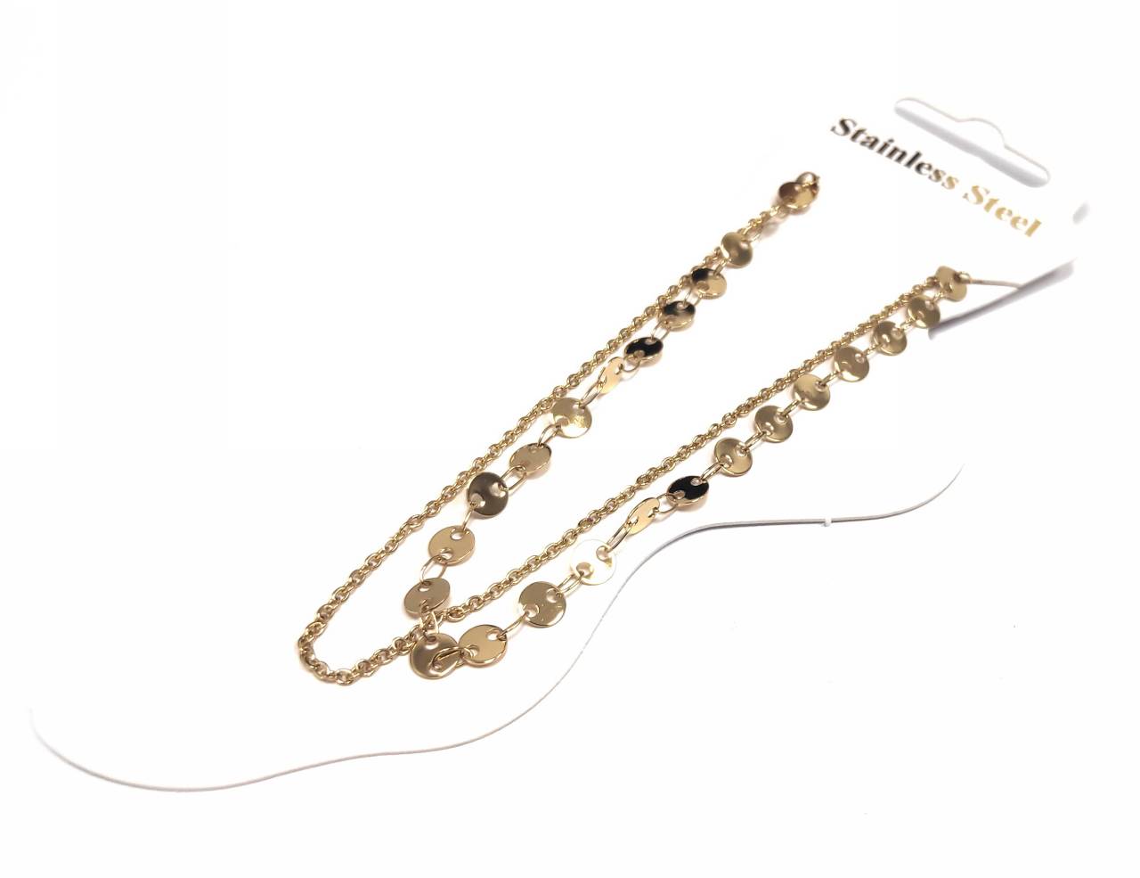 Βραχιόλι Ποδιού Ατσάλι 316L, διπλη αλυσίδα σε χρώμα Χρυσαφί