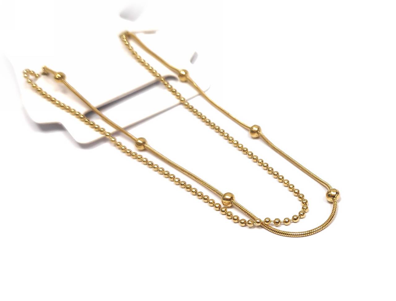 Βραχιόλι Ποδιού Ατσάλι 316L, διπλη αλυσίδα σε χρώμα Χρυσαφί