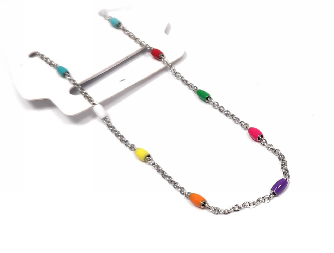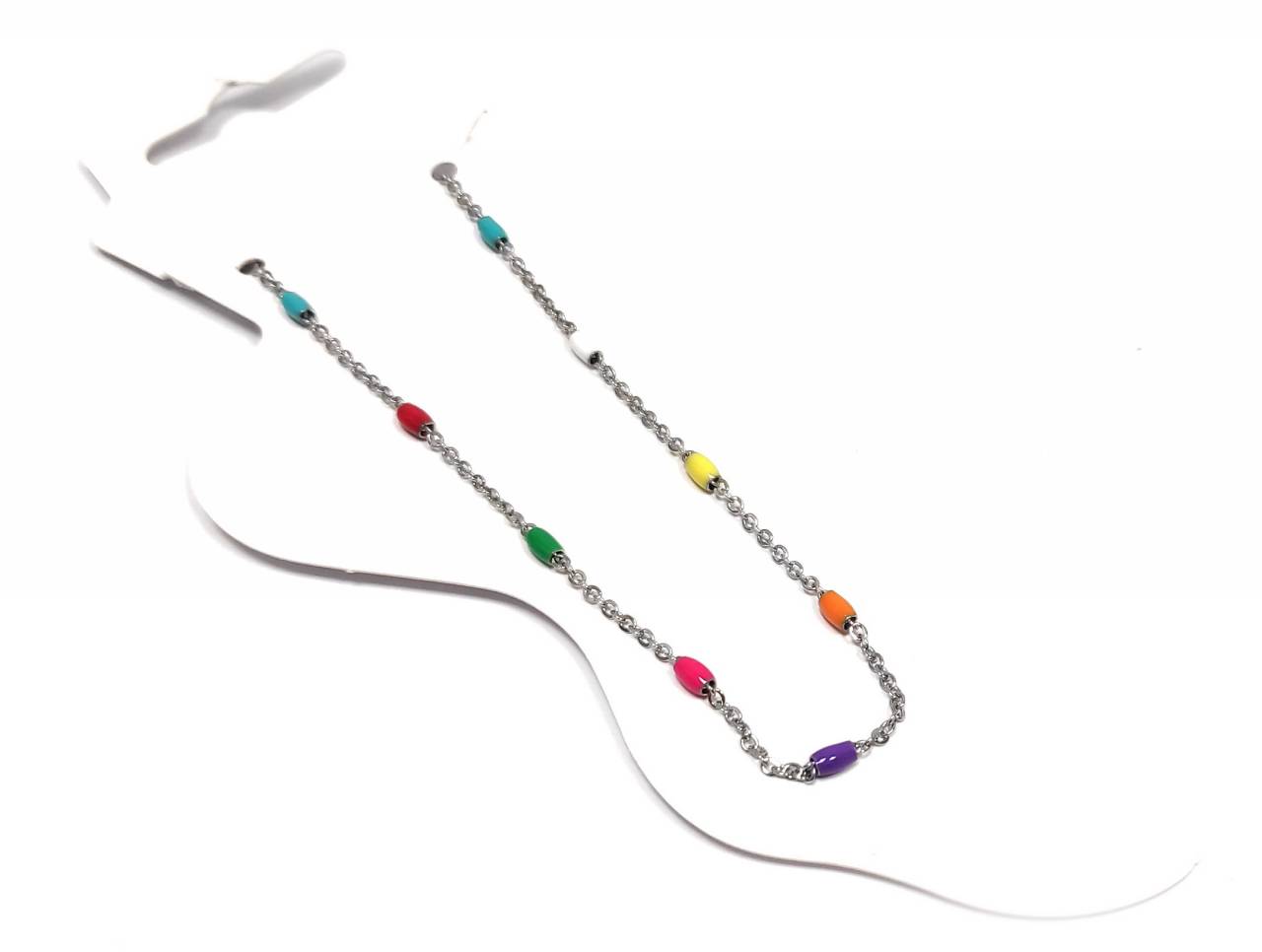 Βραχιόλι Ποδιού Ατσάλι 316L, με πολύχρωμες χάντρες σε χρώμα Ασημί