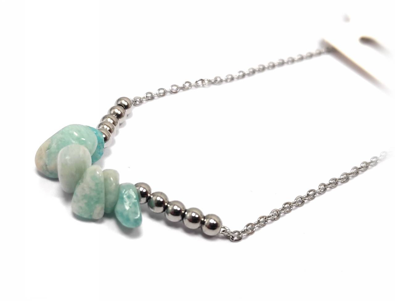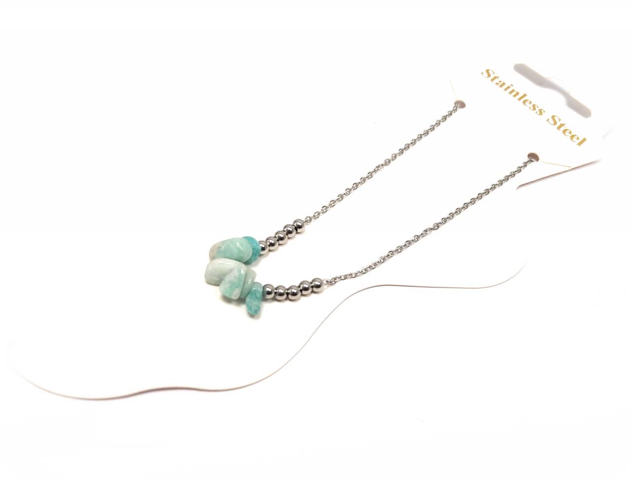 Βραχιόλι Ποδιού Ατσάλι 316L, αλυσίδα με γαλάζιες χάντρες σε χρώμα Ασημί