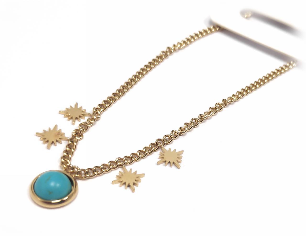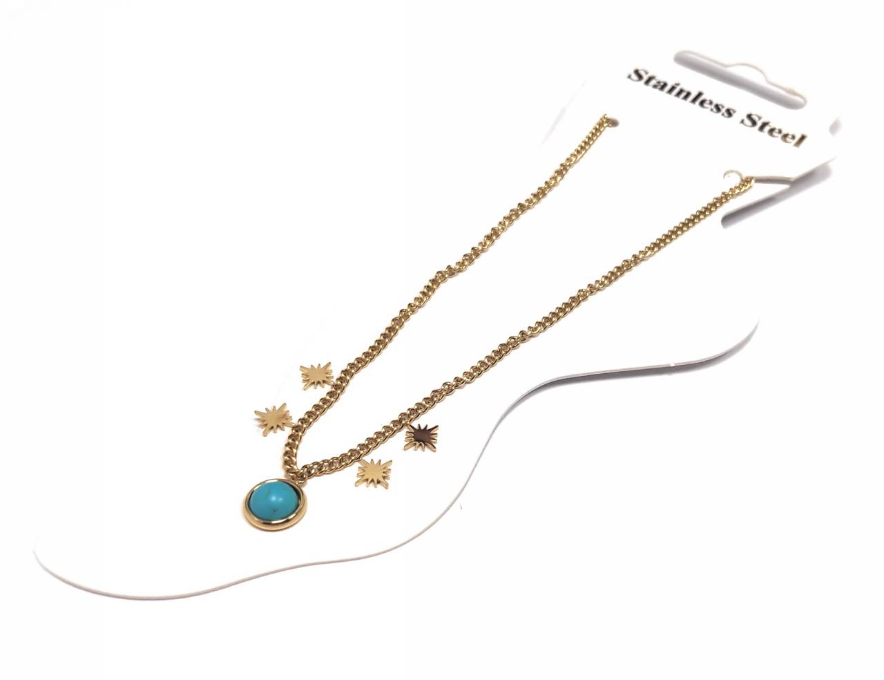 Βραχιόλι Ποδιού Ατσάλι 316L, αλυσίδα με τυρκουάζ και αστέρια σε χρώμα Χρυσαφί