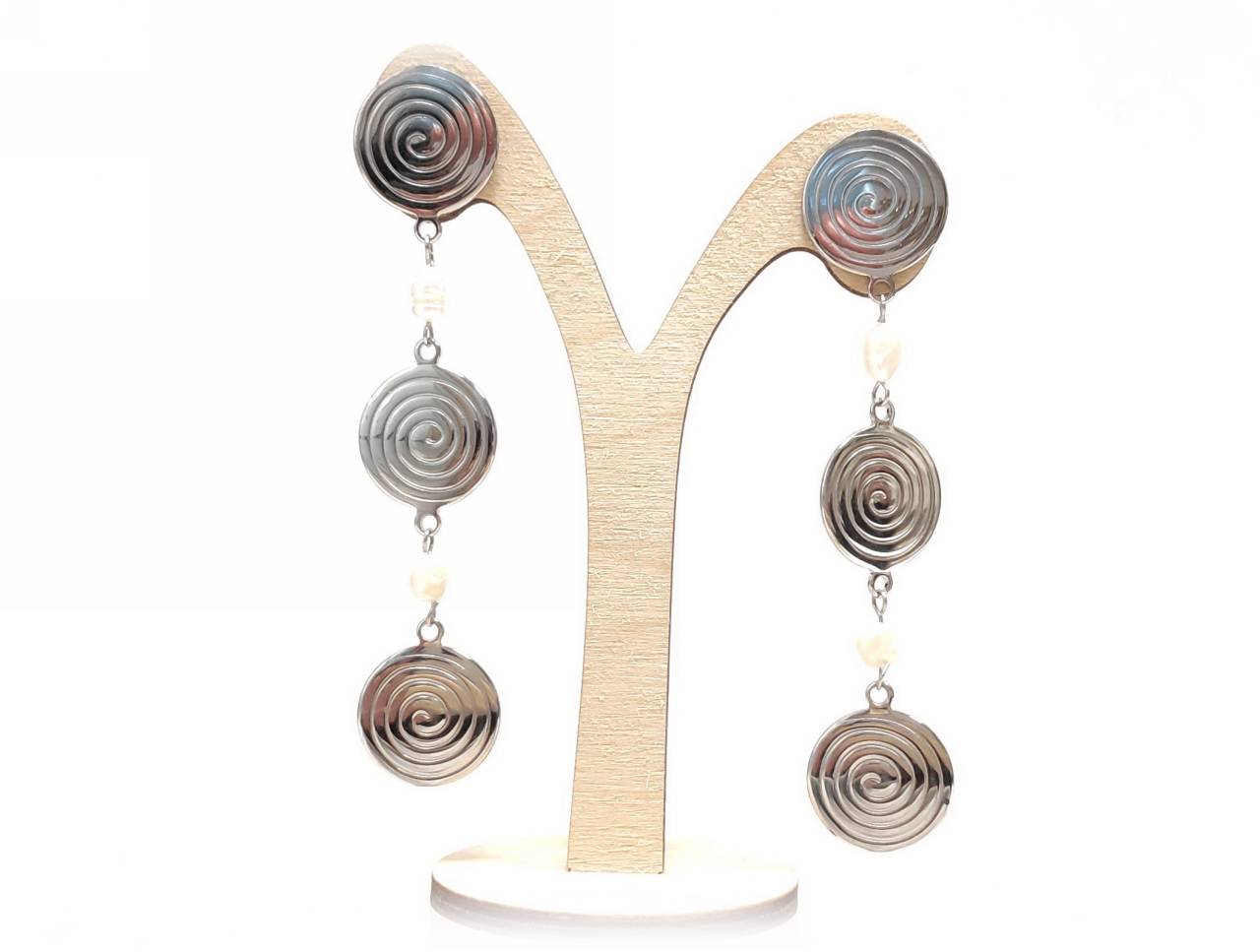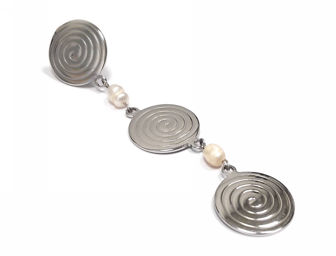 Σκουλαρίκια Ατσάλι 316L, σπείρα με μαργαριτάρι σε χρώμα Ασημί