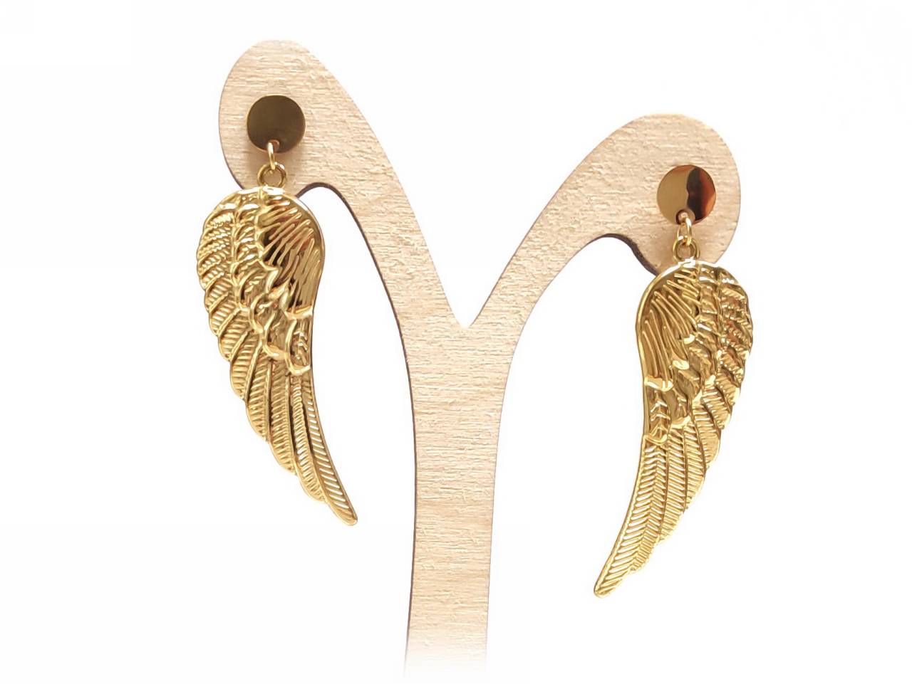 Σκουλαρίκια Ατσάλι 316L, φτερό σε χρώμα Χρυσαφί