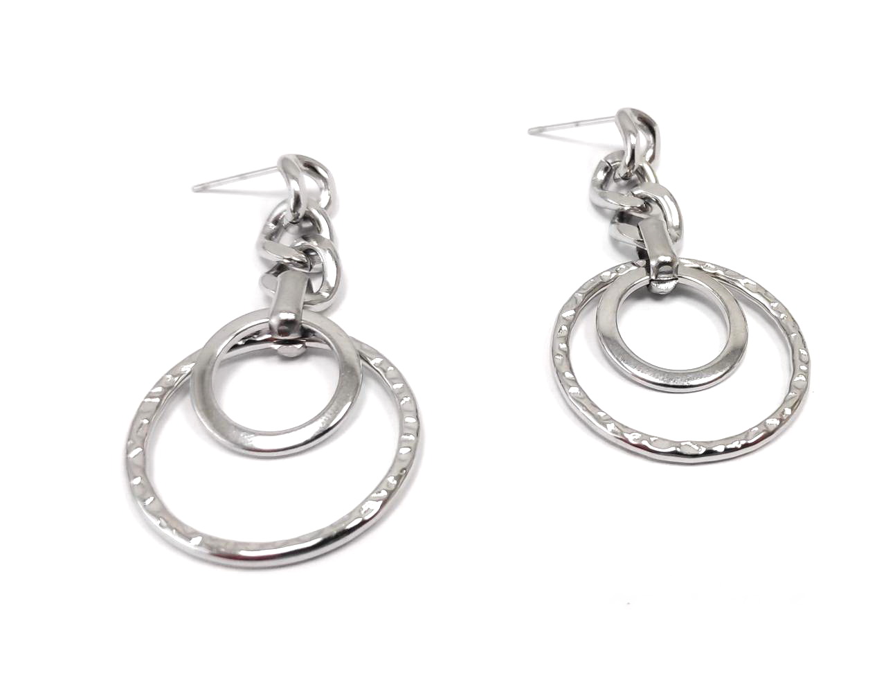 Σκουλαρίκια Ατσάλι 316L, κρίκος και αλυσίδα σε χρώμα Ασημί
