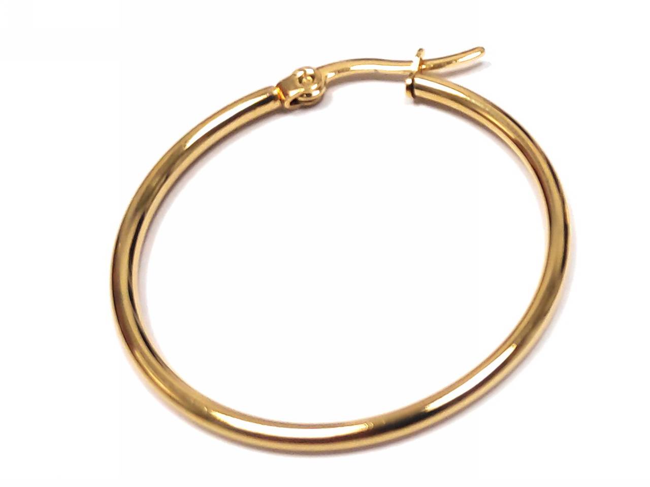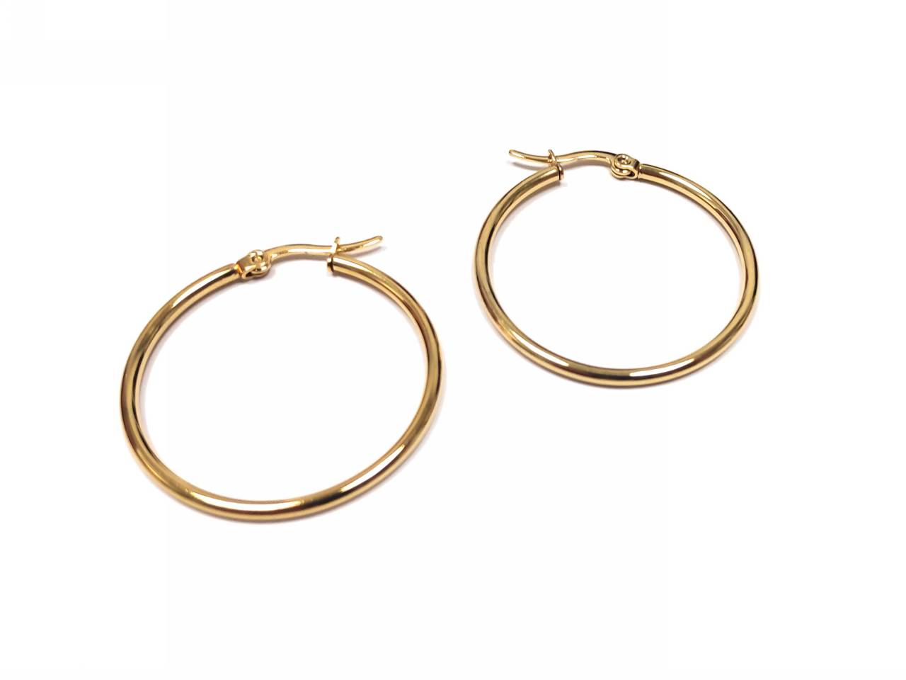 Σκουλαρίκια Ατσάλι 304, κρίκος σε χρώμα Χρυσαφί, Διάμετρος 35mm, Πάχος 3mm
