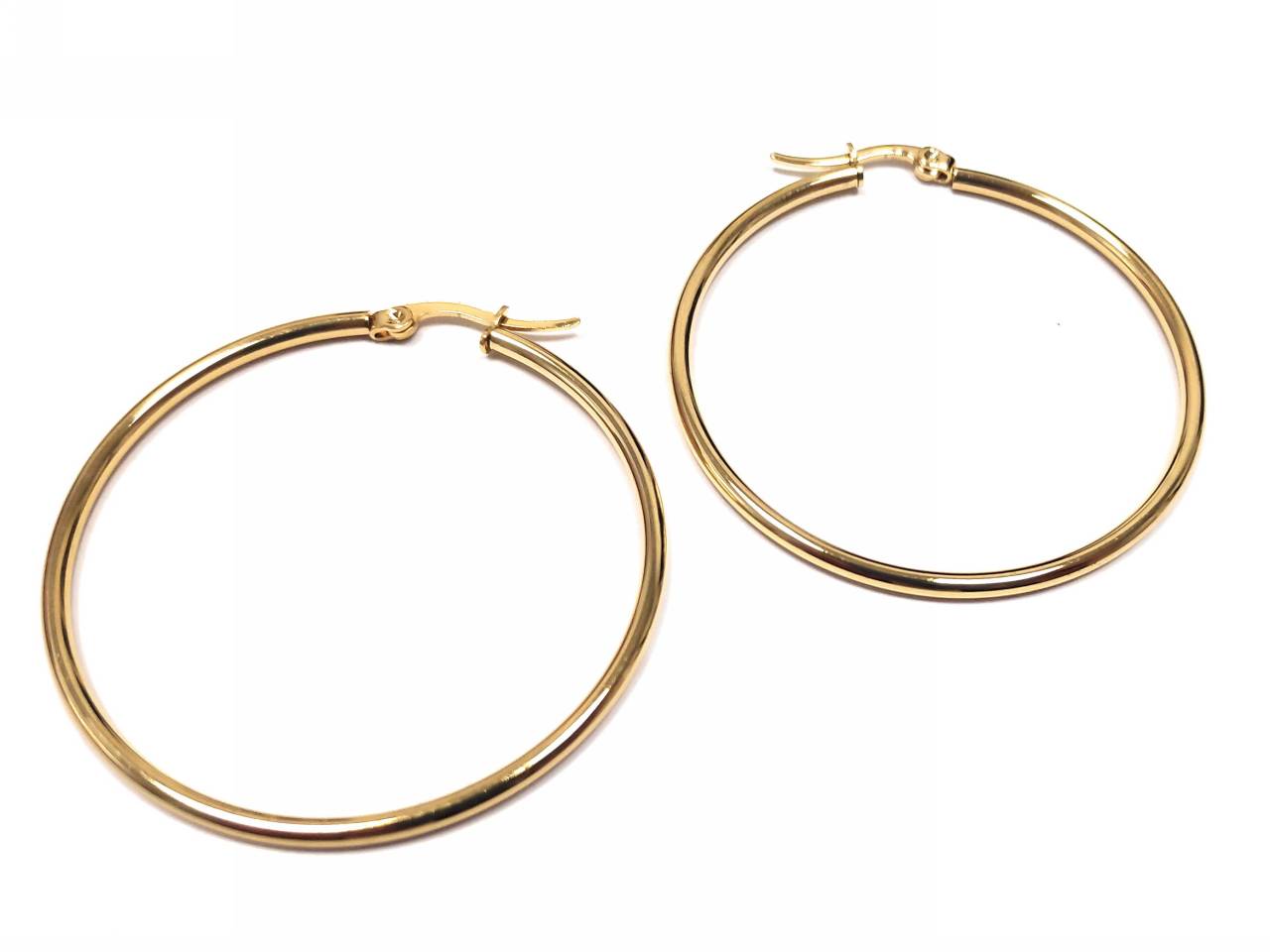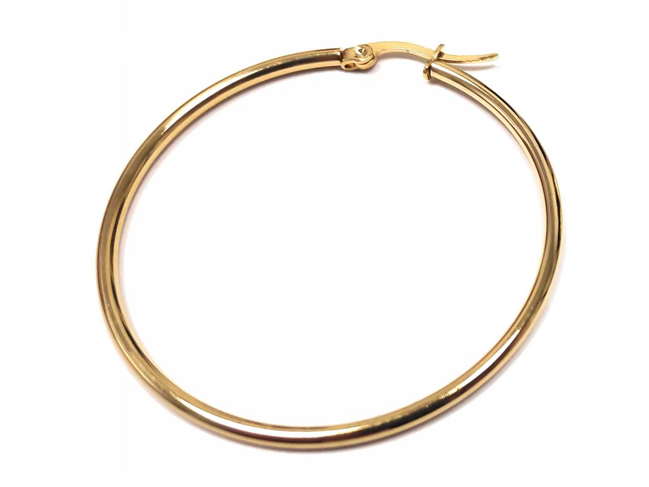 Σκουλαρίκια Ατσάλι 304, κρίκος σε χρώμα Χρυσαφί, Διάμετρος 45mm, Πάχος 3mm