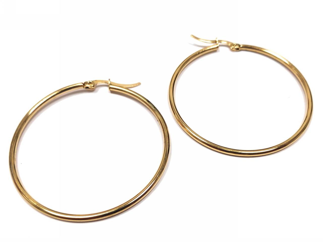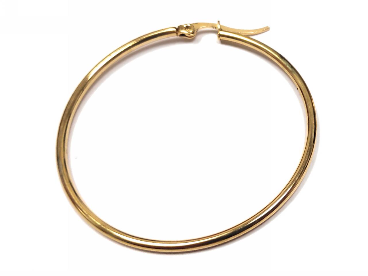 Σκουλαρίκια Ατσάλι 304, κρίκος σε χρώμα Χρυσαφί, Διάμετρος 50mm, Πάχος 3mm