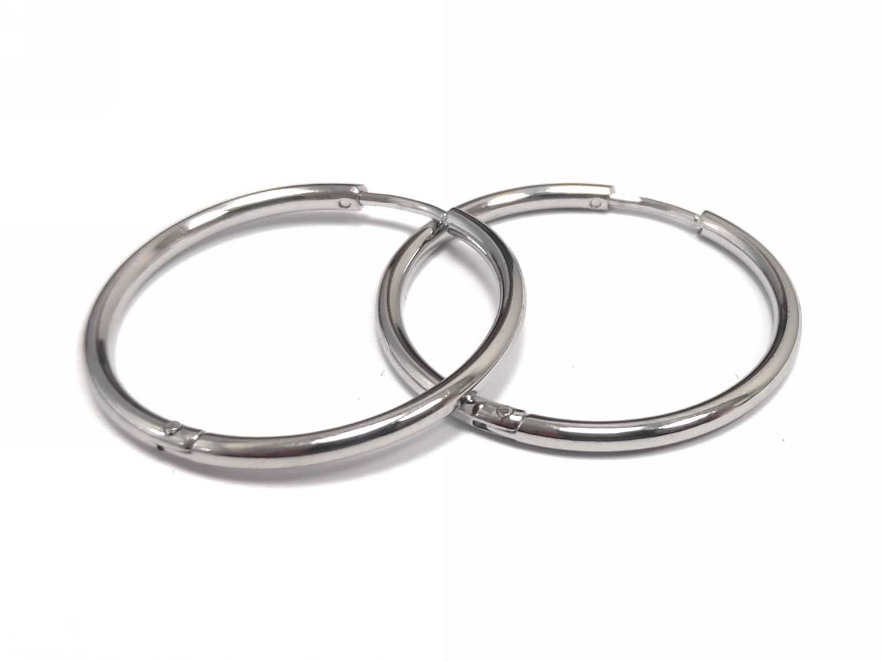 Σκουλαρίκια Ατσάλι 316L, κρίκος σε χρώμα Ασημί, Διάμετρος 3,5cm