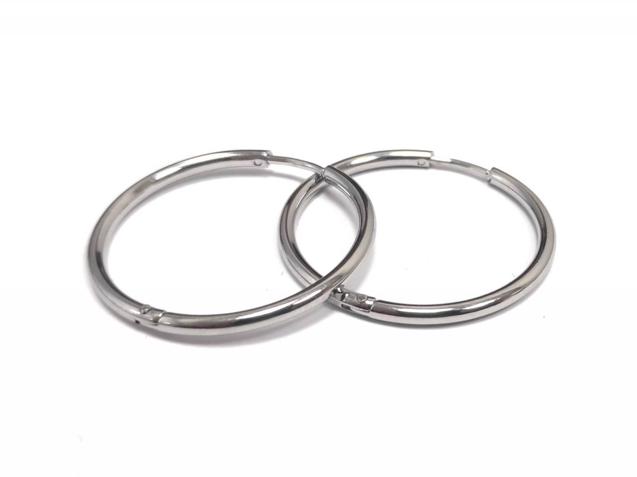 Σκουλαρίκια Ατσάλι 316L, κρίκος σε χρώμα Ασημί, Διάμετρος 3cm