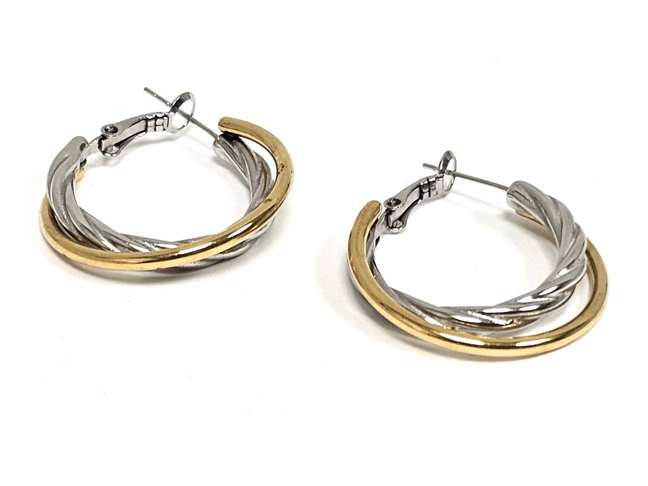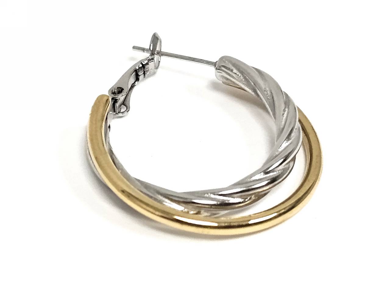 Σκουλαρίκια Ατσάλι 316L, διπλός κρίκος σε χρώμα Ασημί και χρώμα Χρυσαφί