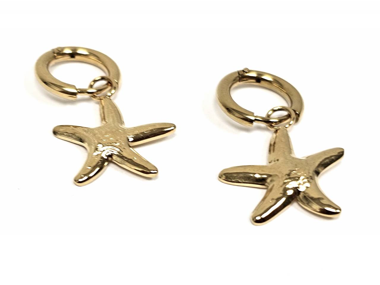 Σκουλαρίκια Ατσάλι 316L, κρίκος με αστερία σε χρώμα Χρυσαφί