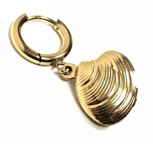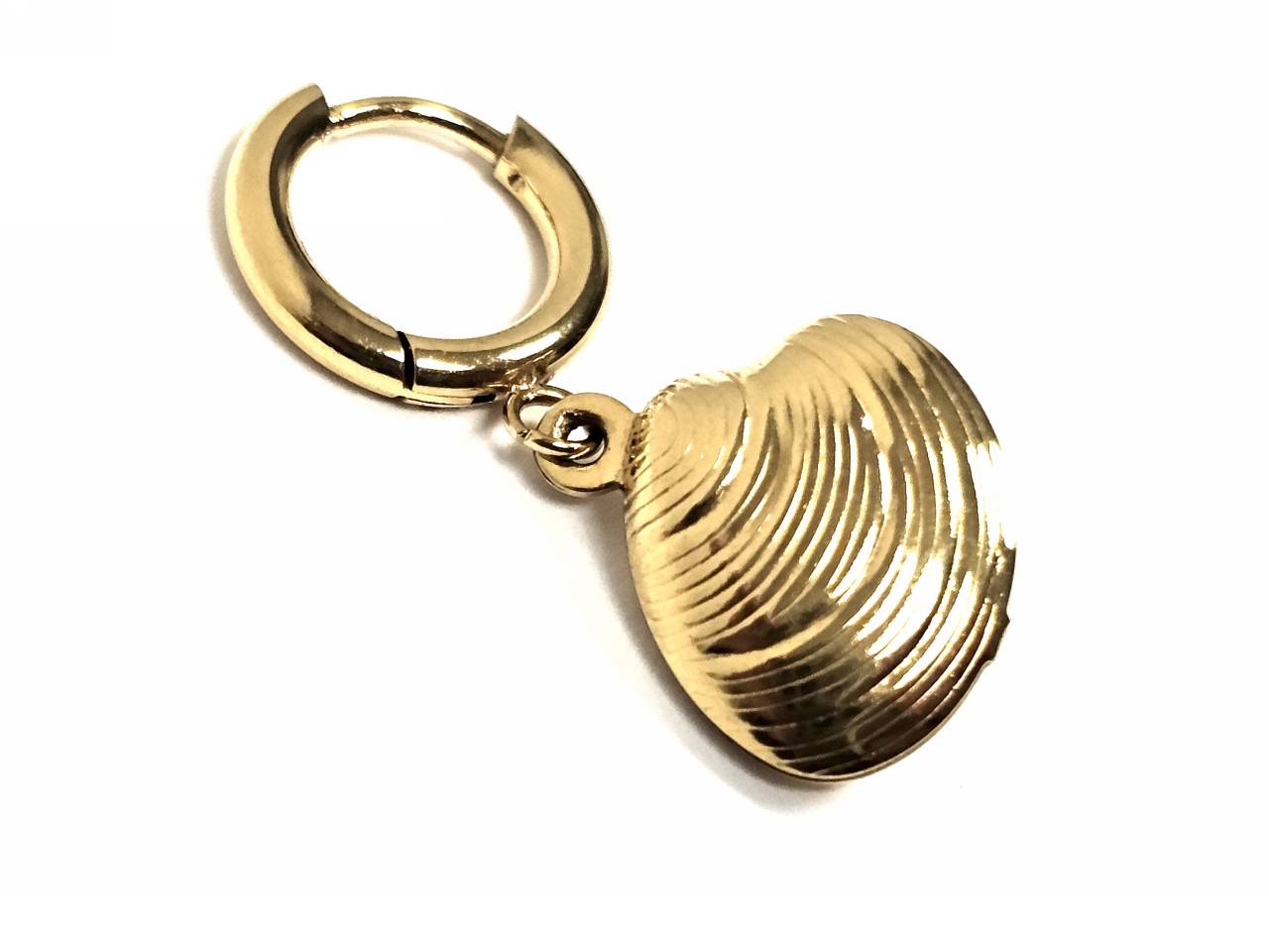 Σκουλαρίκια Ατσάλι 316L, κρίκος με κοχύλι σε χρώμα Χρυσαφί