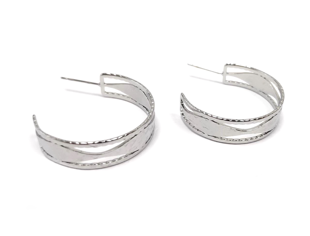 Σκουλαρίκια Ατσάλι 316L, κρίκος σε χρώμα Ασημί, Διάμετρος 3cm