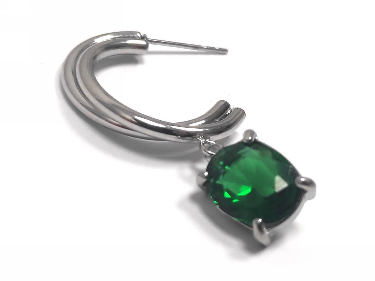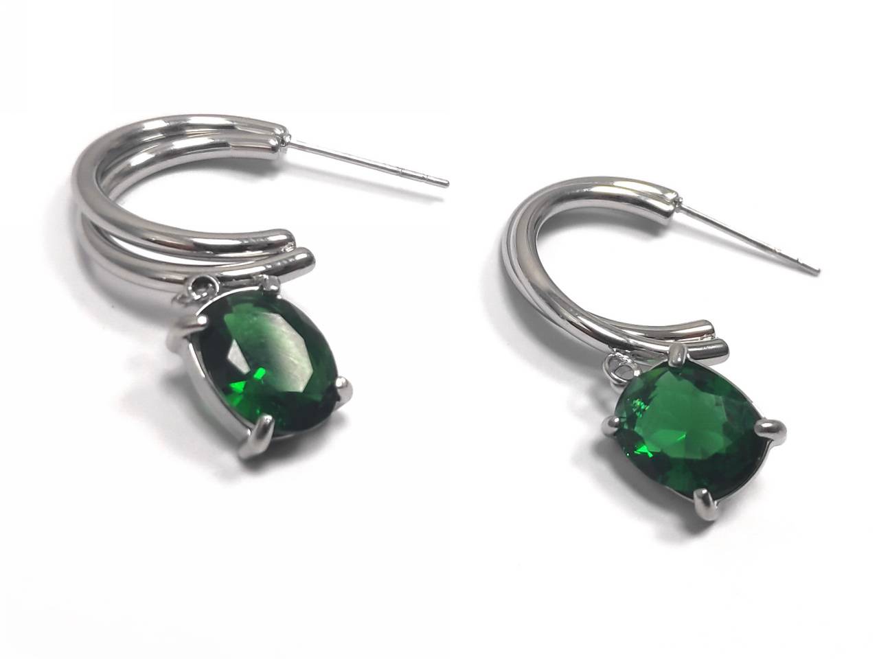 Σκουλαρίκια Ατσάλι 316L, με πράσινο κρυσταλλάκι σε χρώμα Ασημί