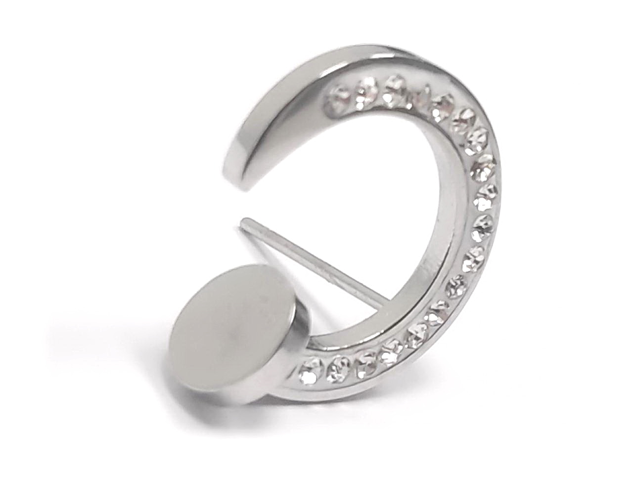 Σκουλαρίκια Ατσάλι 316L,κρίκος με στρας σε χρώμα Ασημί