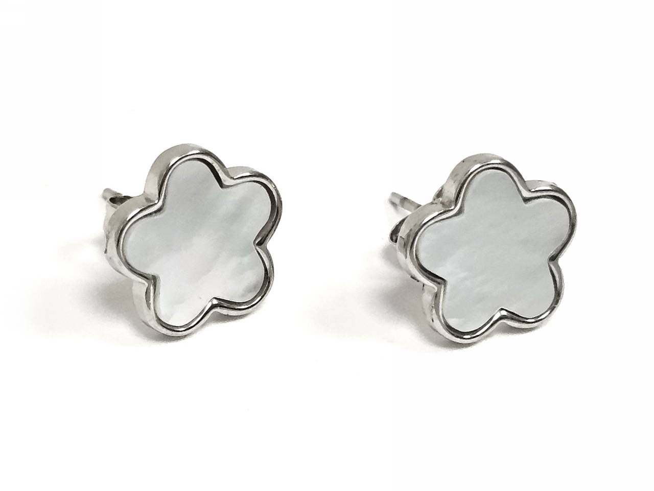 Σκουλαρίκια Ατσάλι 316L, λουλούδι με φίλντισι σε χρώμα Ασημί