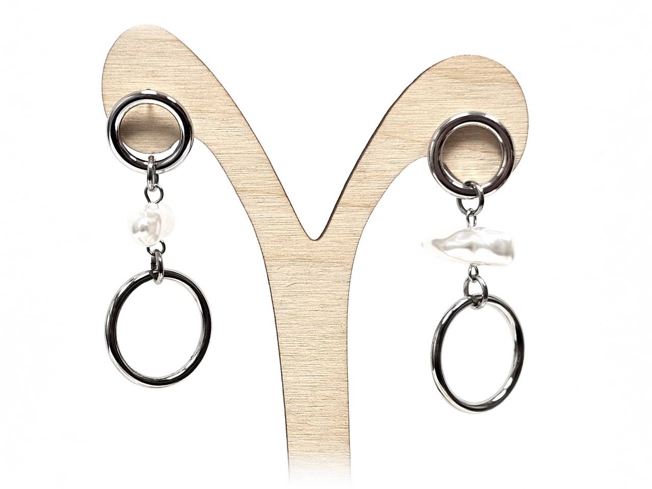 Σκουλαρίκια Ατσάλι 316L, με μαργαριτάρι σε χρώμα Ασημί