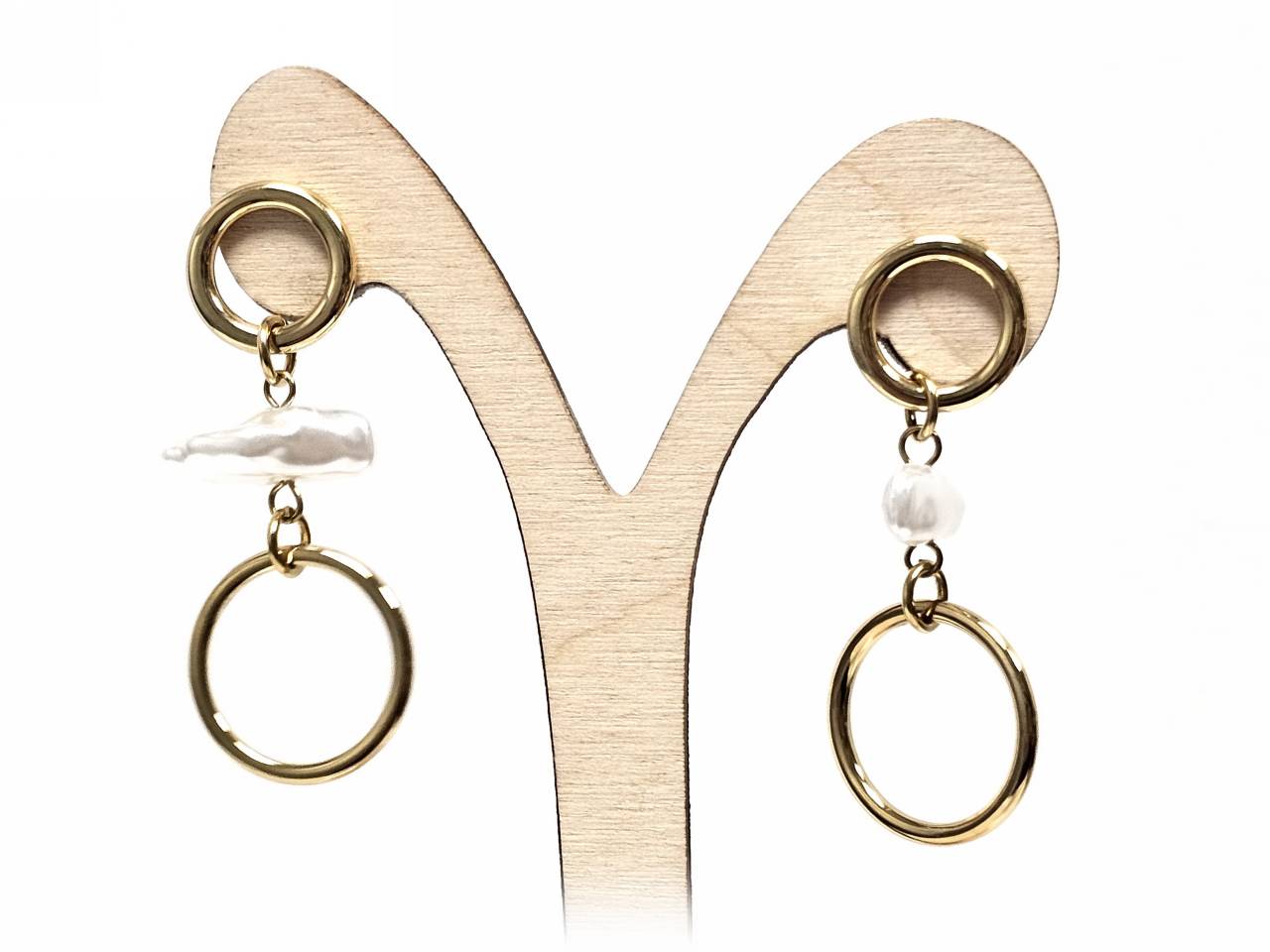 Σκουλαρίκια Ατσάλι 316L, με μαργαριτάρι σε χρώμα Χρυσαφί