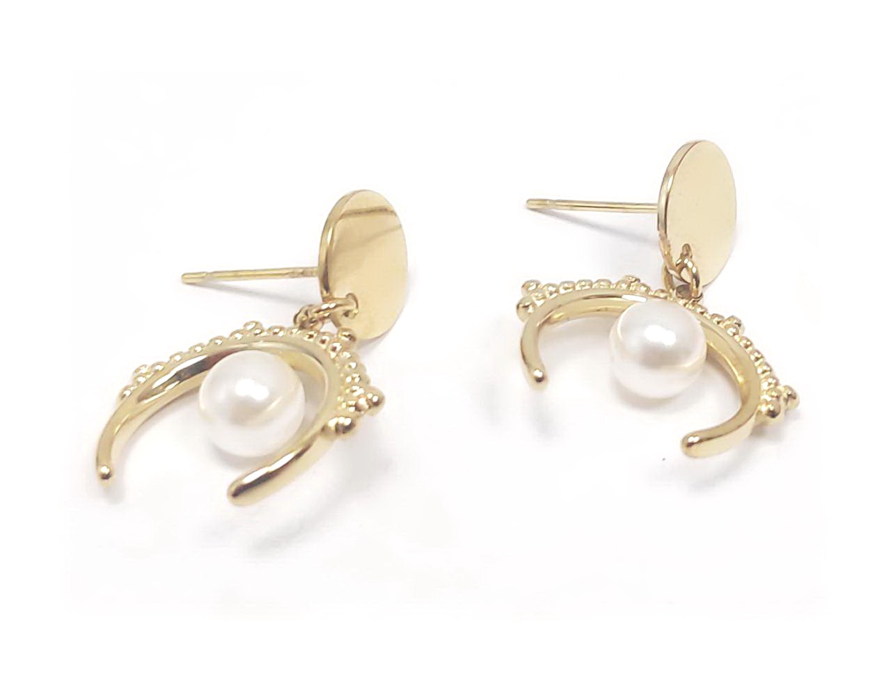Σκουλαρίκια Ατσάλι 316L, πέρλα σε χρώμα Χρυσαφί