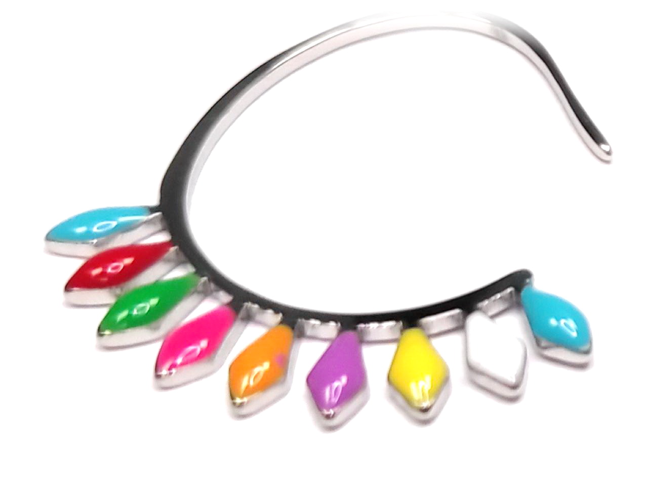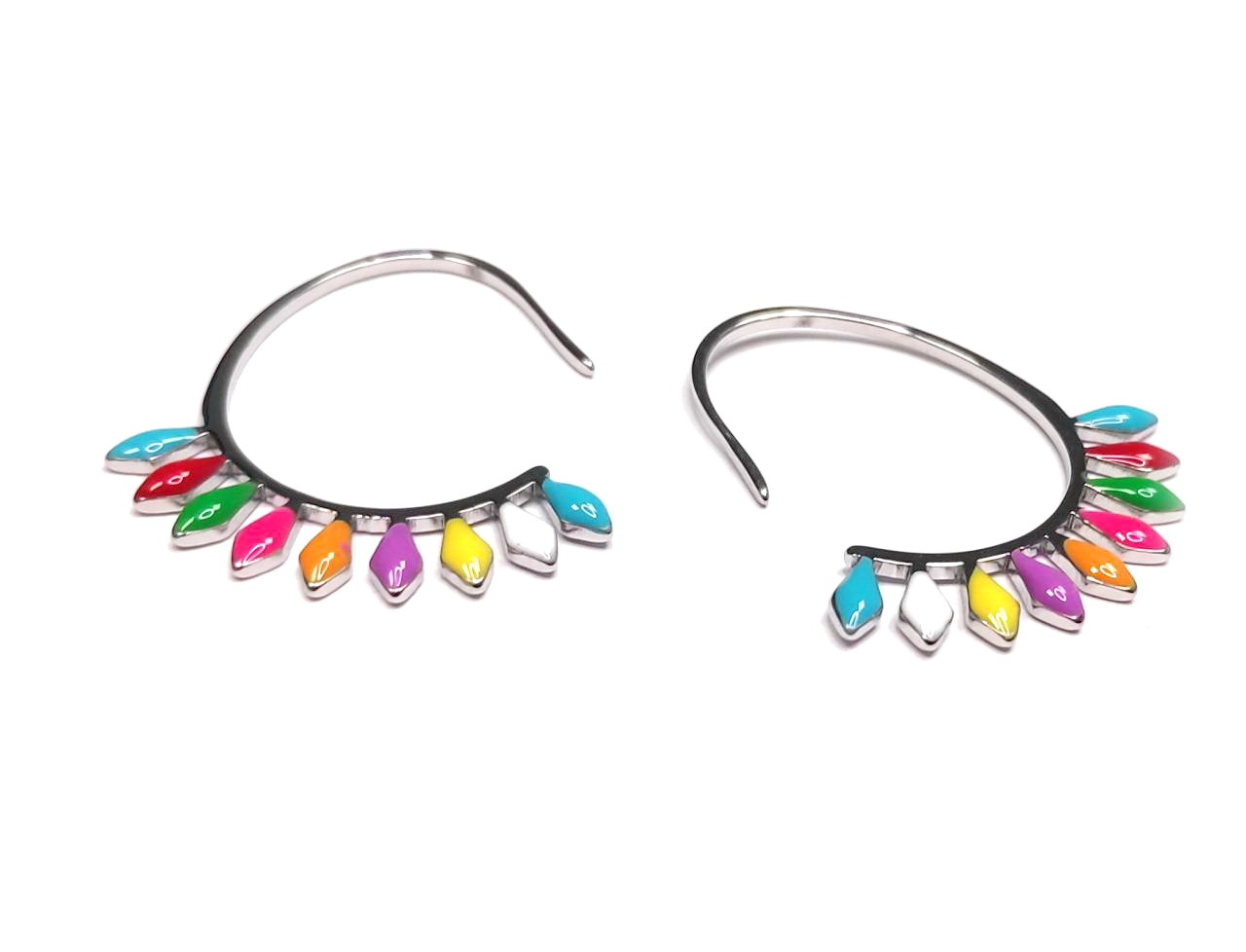 Σκουλαρίκια Ατσάλι 316L, κρίκος με πολύχρωμες πέτρες με σμάλτο σε χρώμα Ασημί, Διάμετρος 2cm