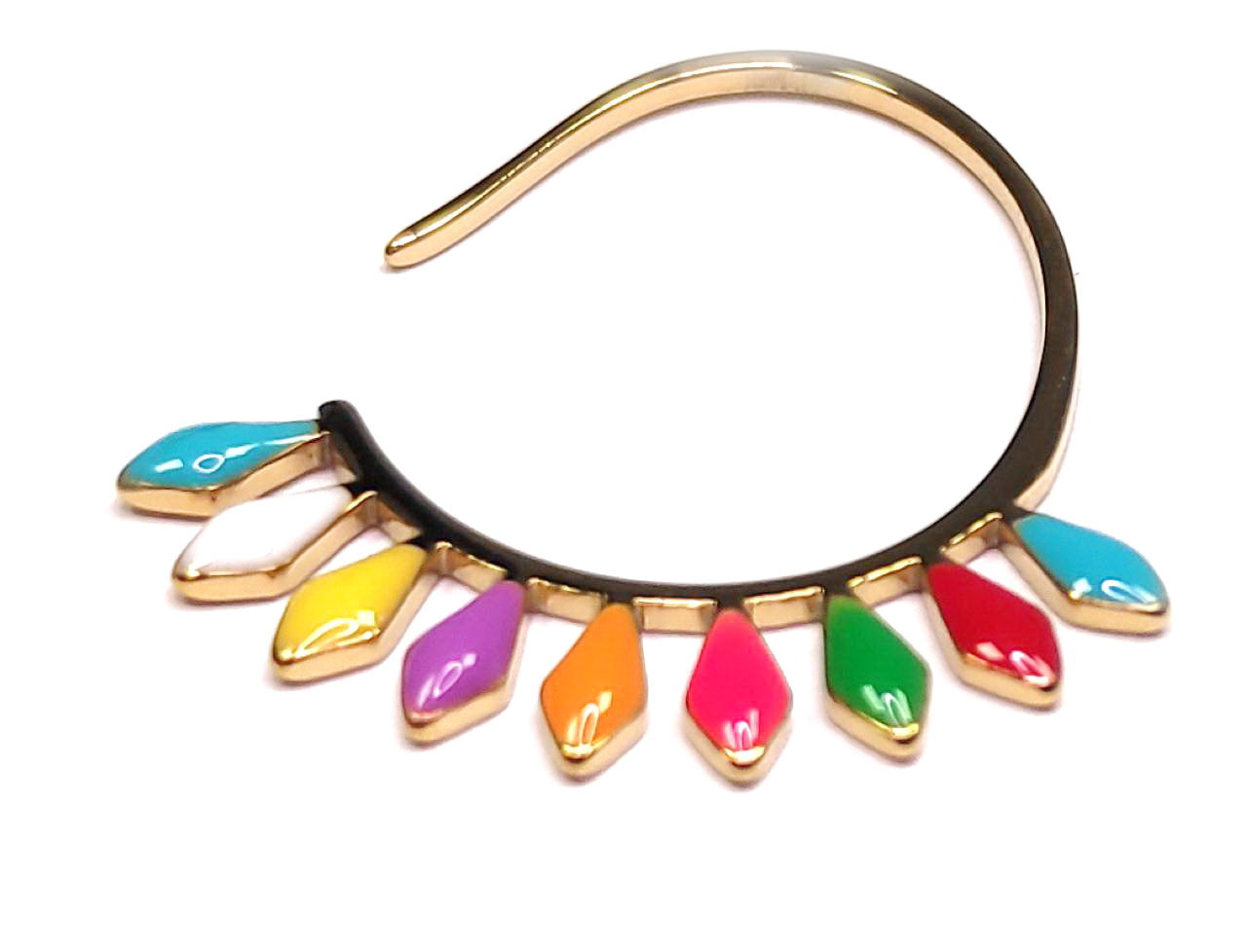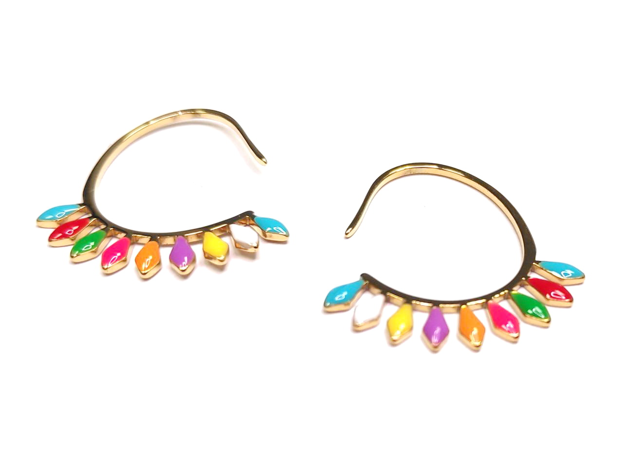 Σκουλαρίκια Ατσάλι 316L, κρίκος με πολύχρωμες πέτρες με σμάλτο σε χρώμα Χρυσαφί, Διάμετρος 2cm