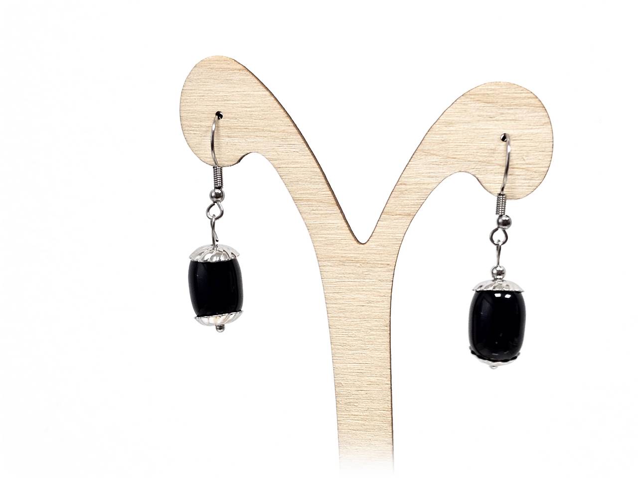 Σκουλαρίκια Πέτρα Ατσάλι 316L, με αχάτη σε χρώμα Ασημί