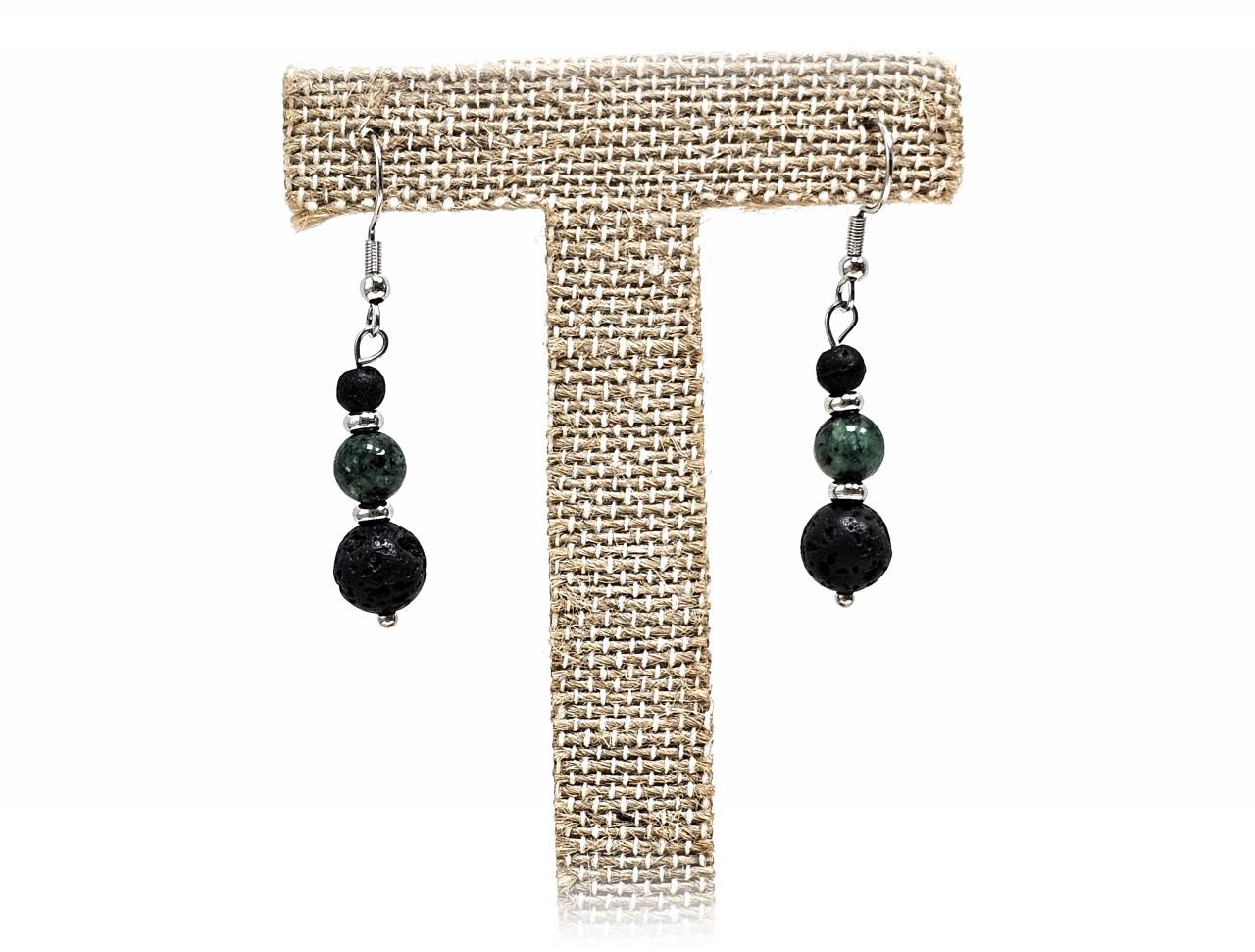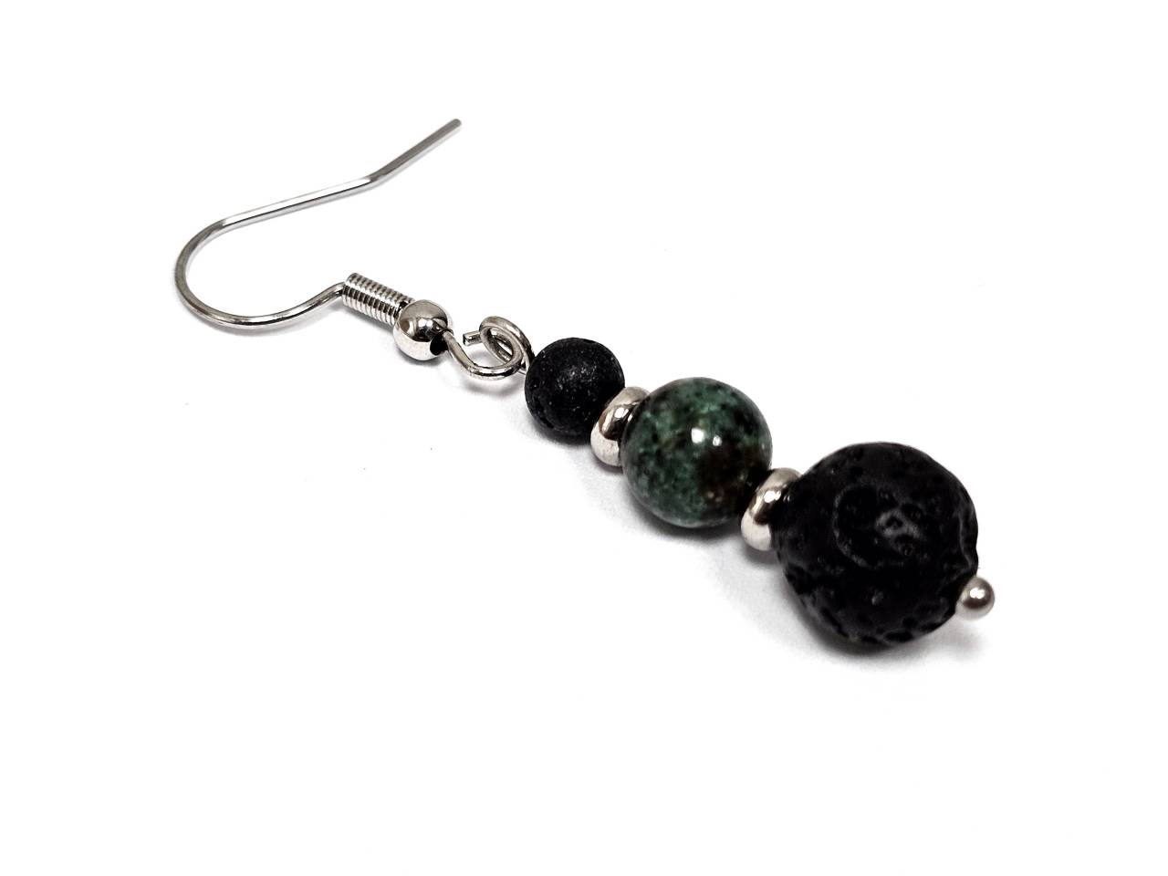 Σκουλαρίκια Πέτρα ημιπολύτιμη και λάβα, ατσάλι σε χρώμα Ασημί