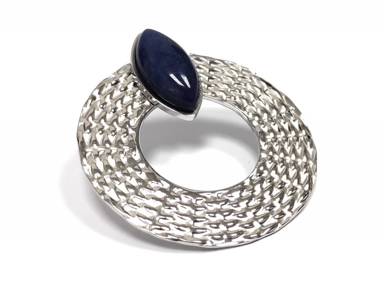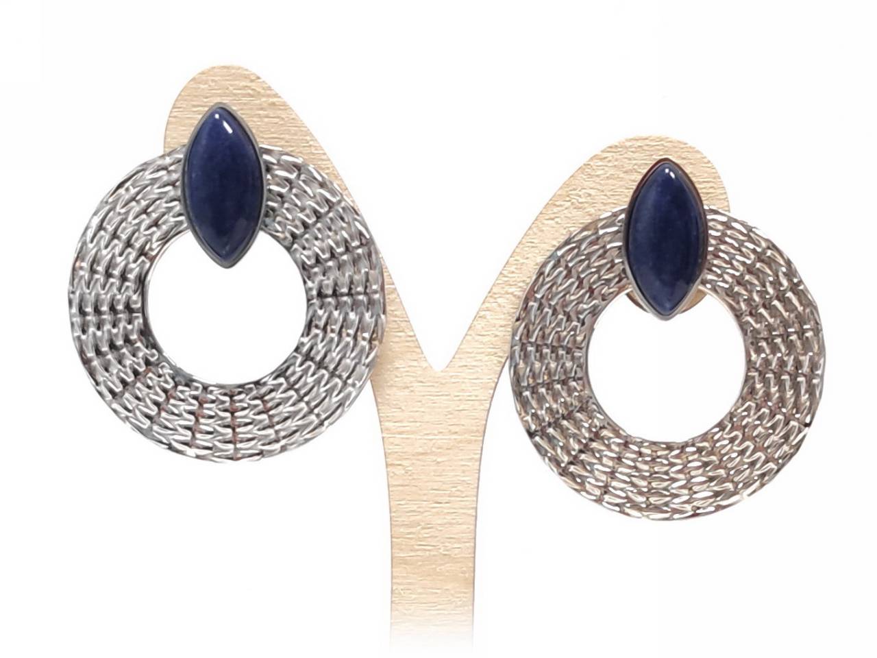 Σκουλαρίκια Πέτρα 316L, κρίκος με Lapis σε χρώμα Ασημί