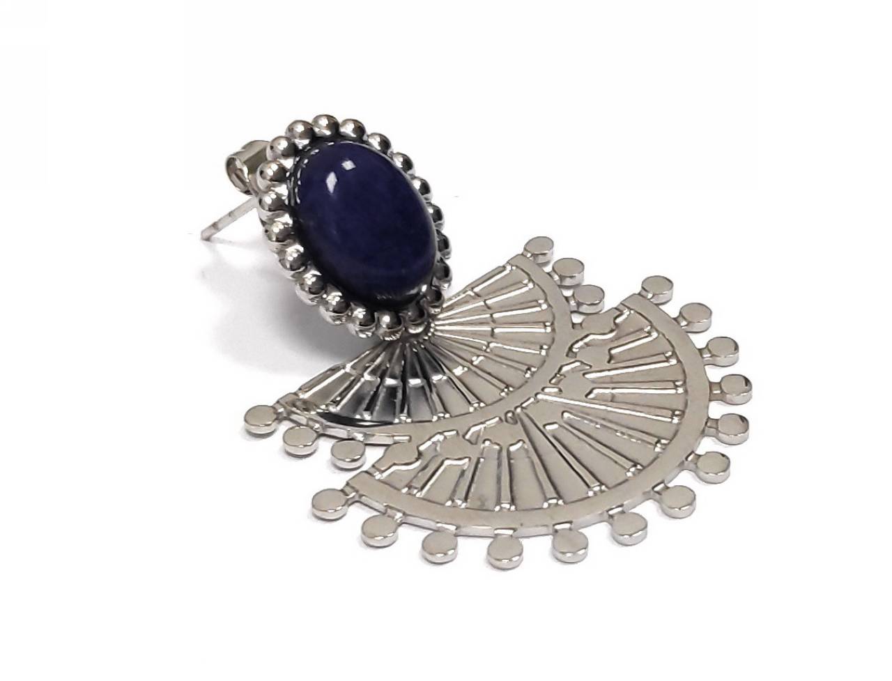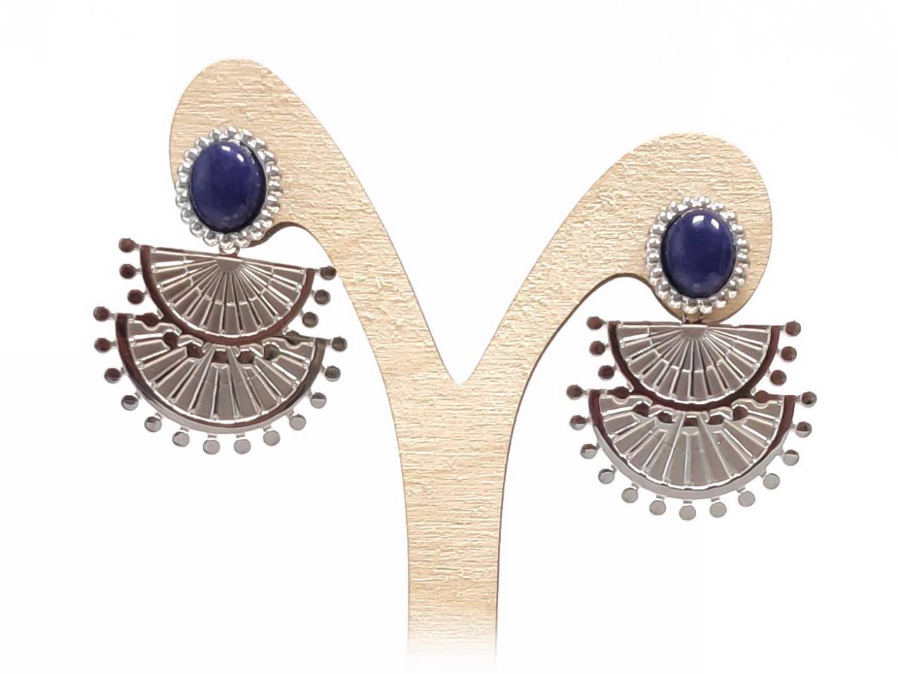 Σκουλαρίκια Πέτρα 316L, με Lapis σε χρώμα Ασημί